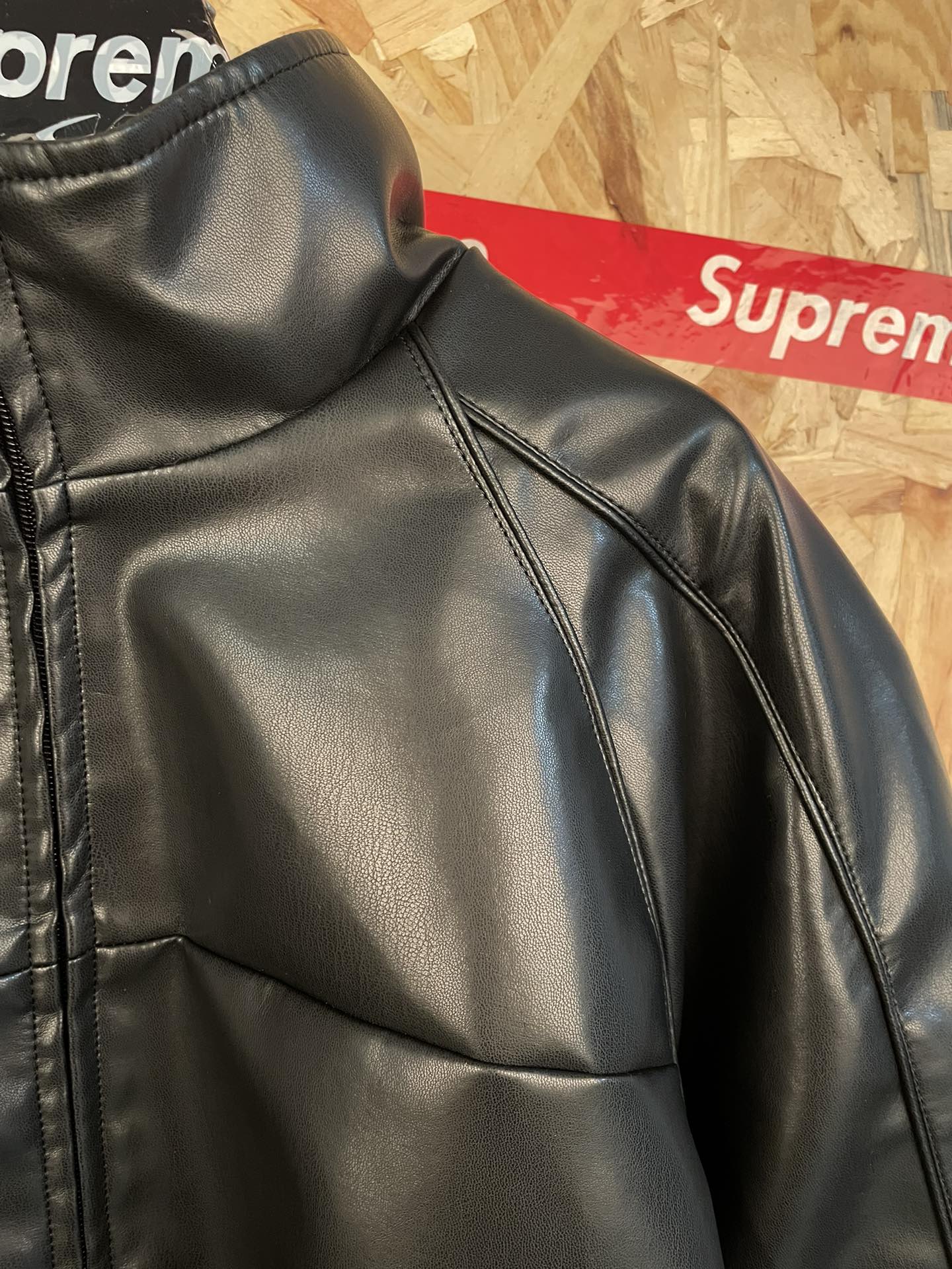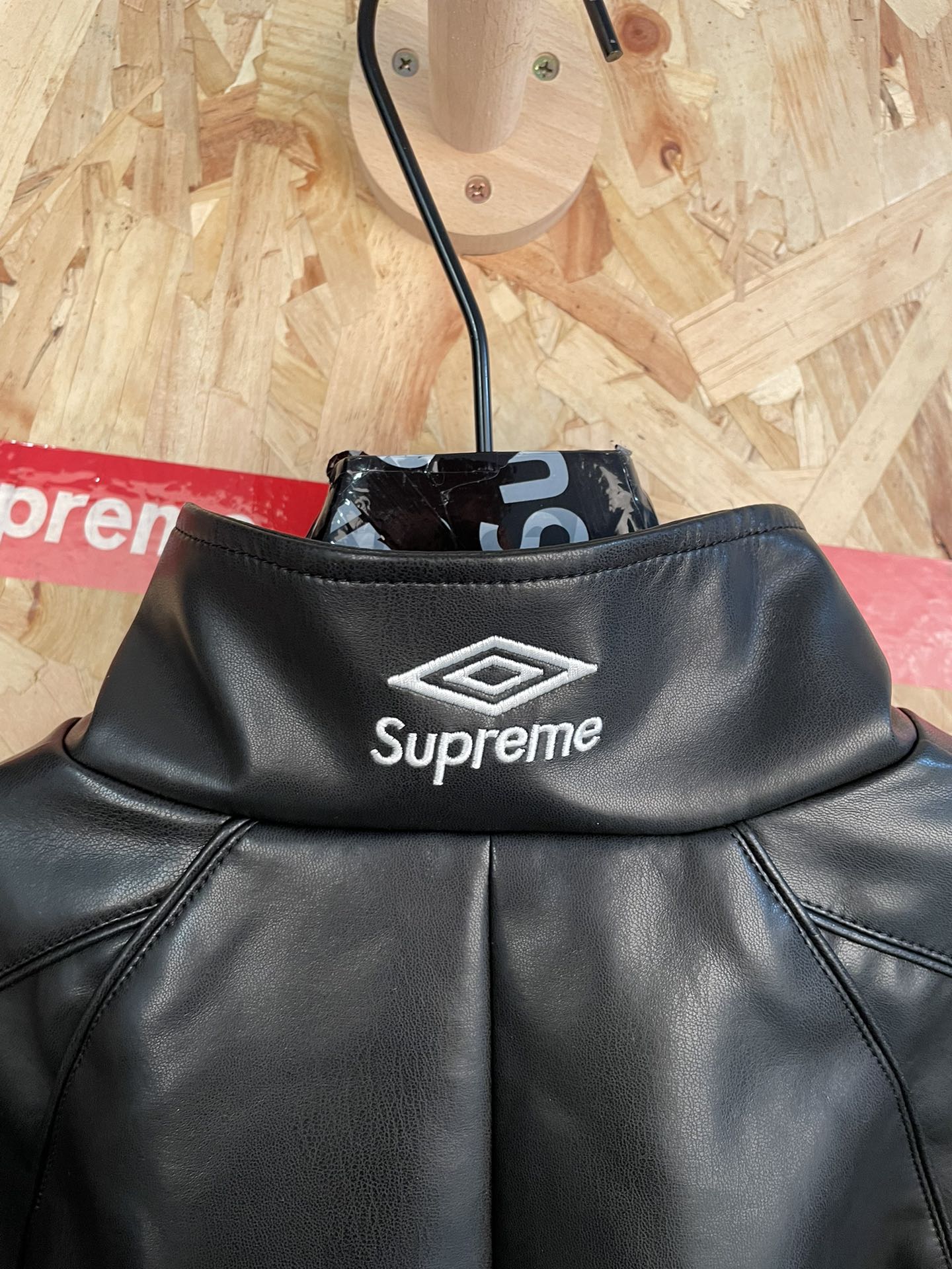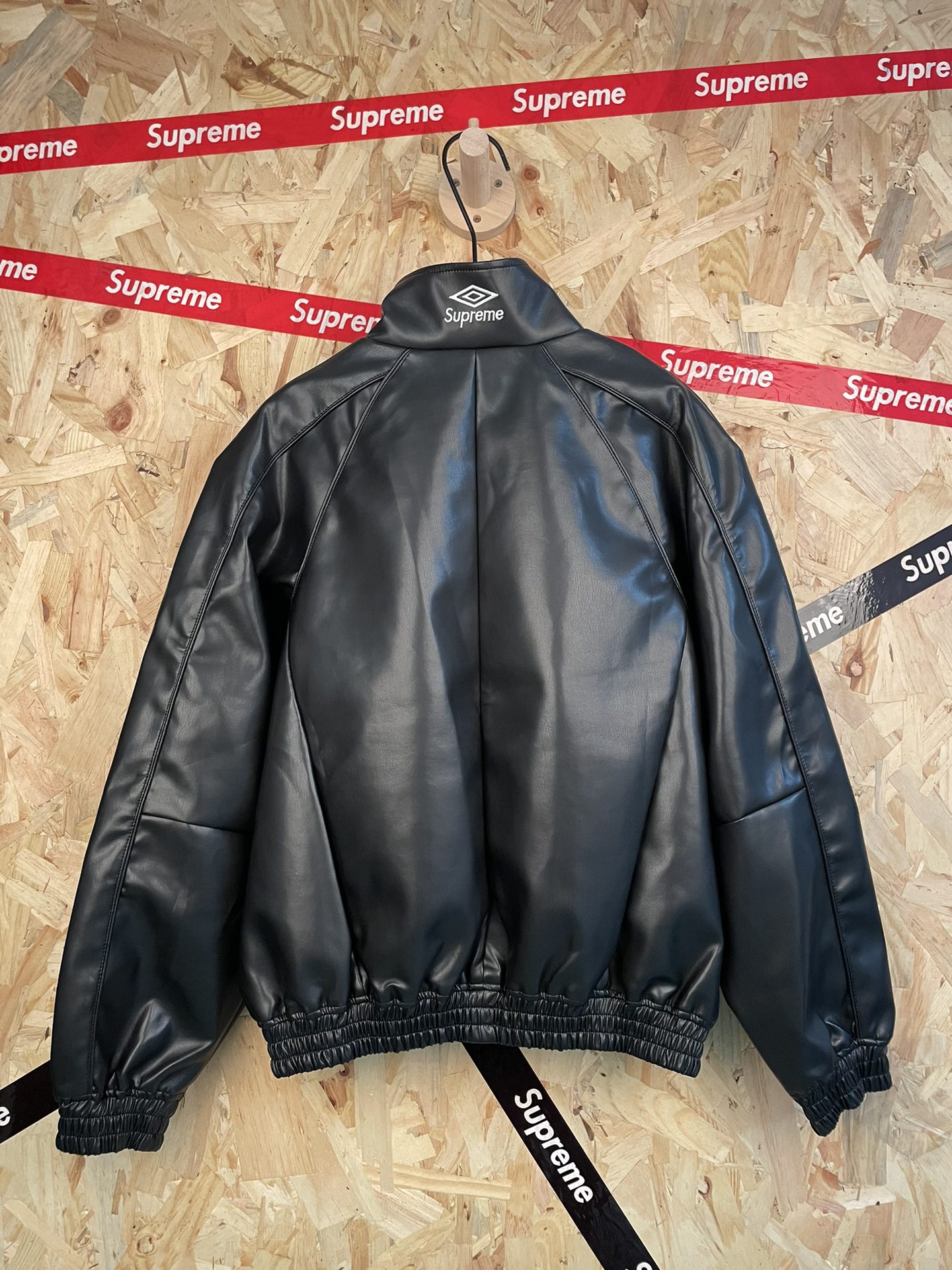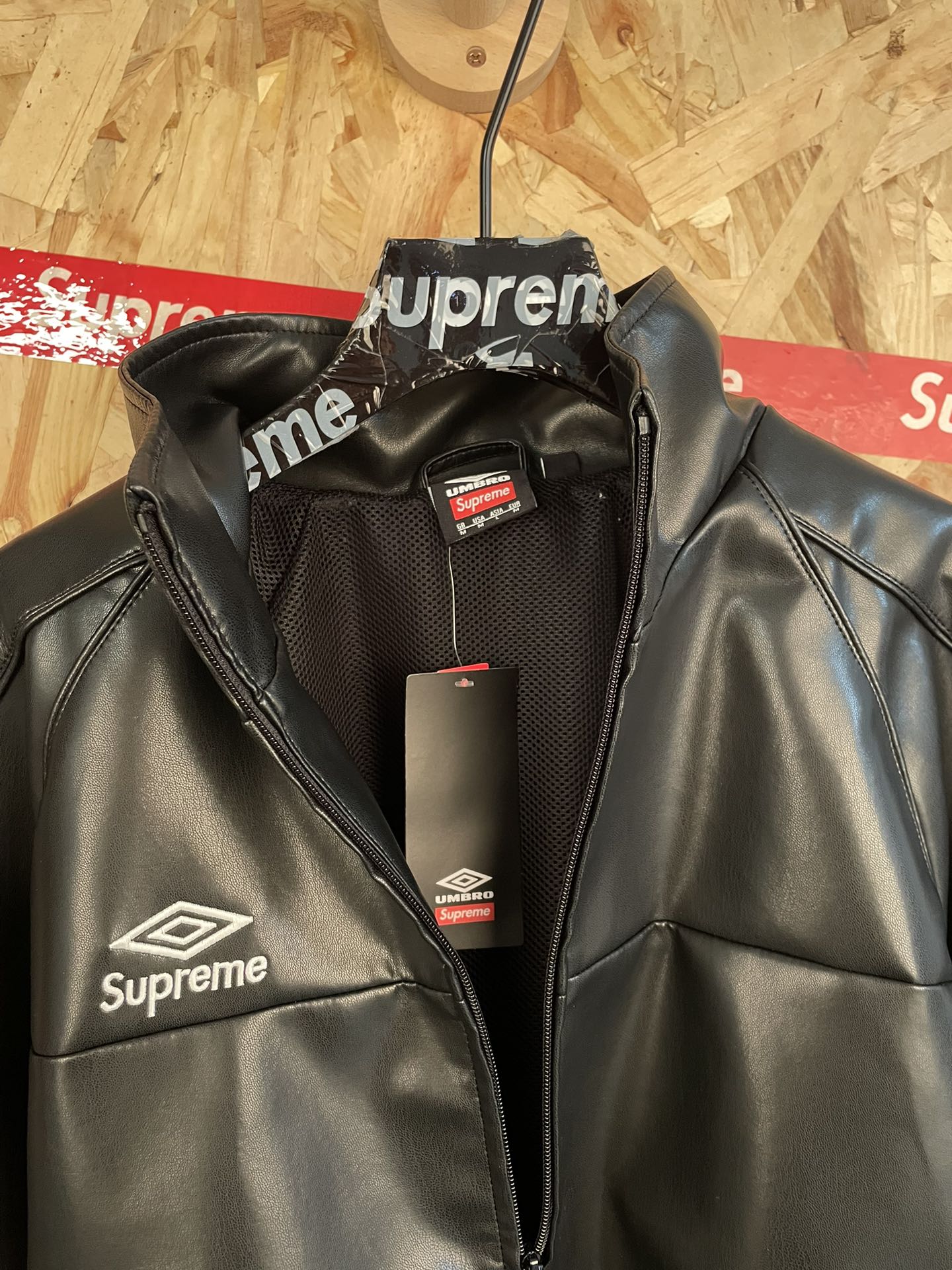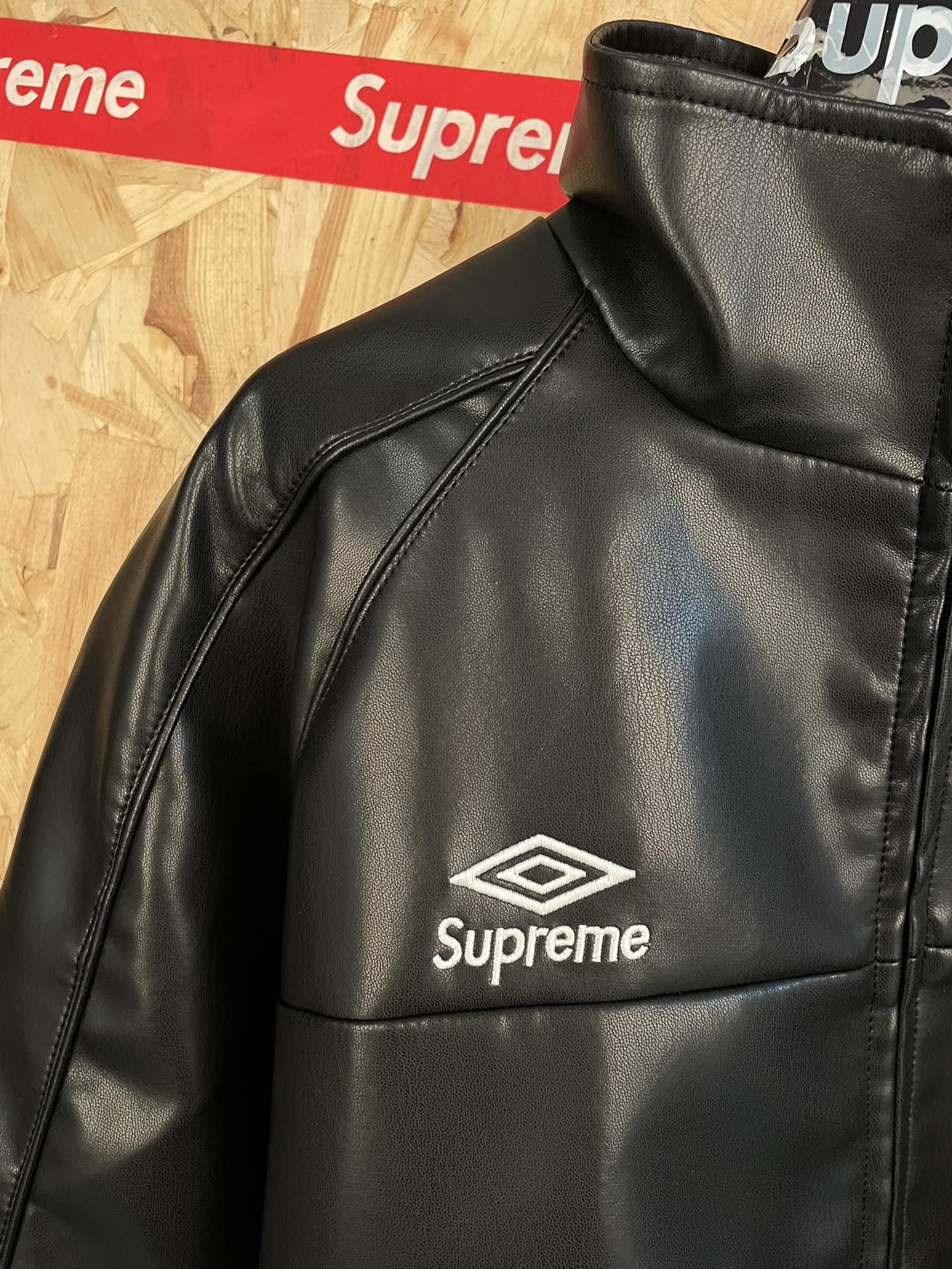 su reme x Umbro联名ss25刺绣logo拉链羊皮面料夹克外套男女同款