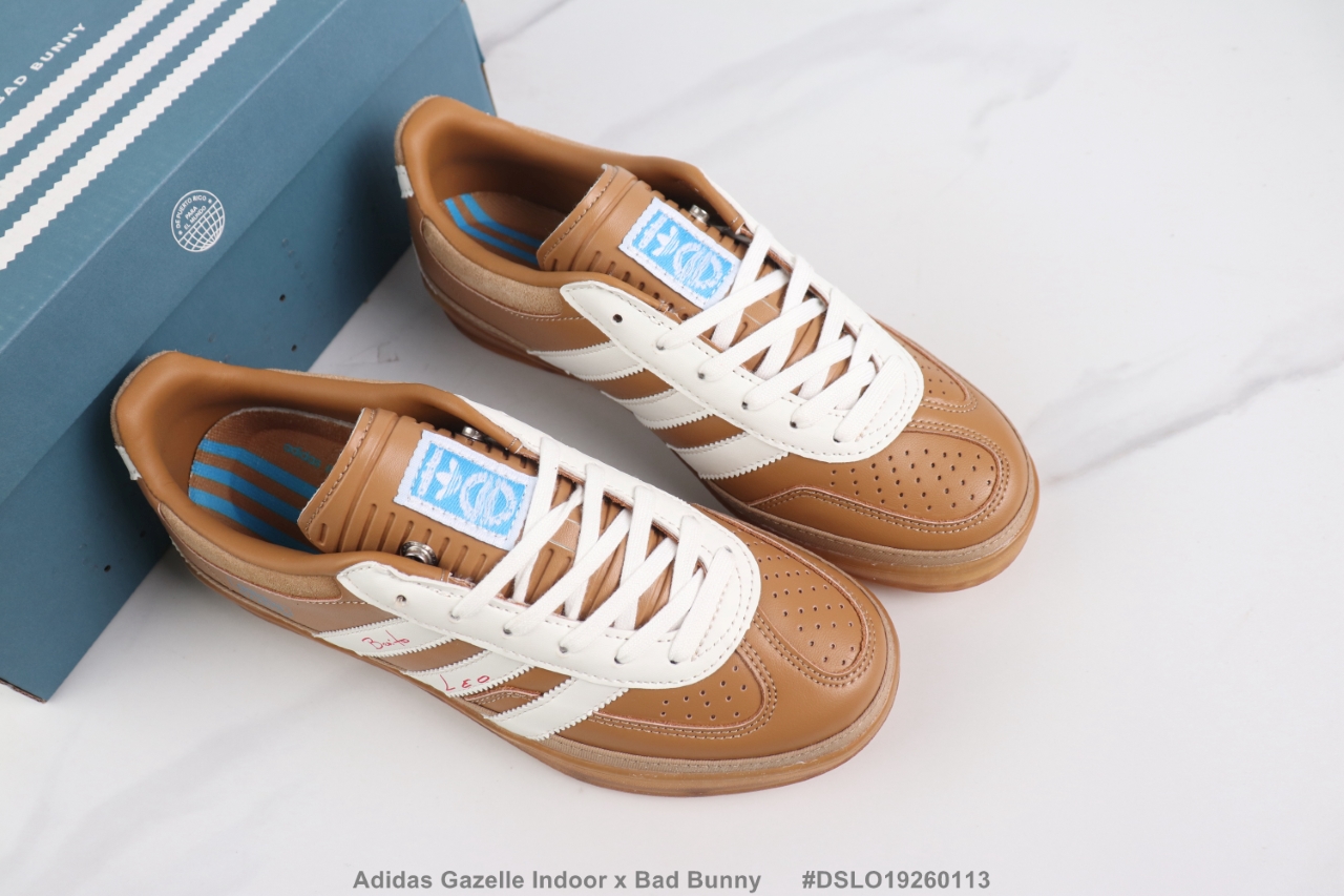 Adidas Gazelle Indoor x Bad Bunny 联名款 阿迪达斯三叶草复古休闲鞋 桑巴复刻 牛皮材质德训鞋 真标带半码 Size 36 45码