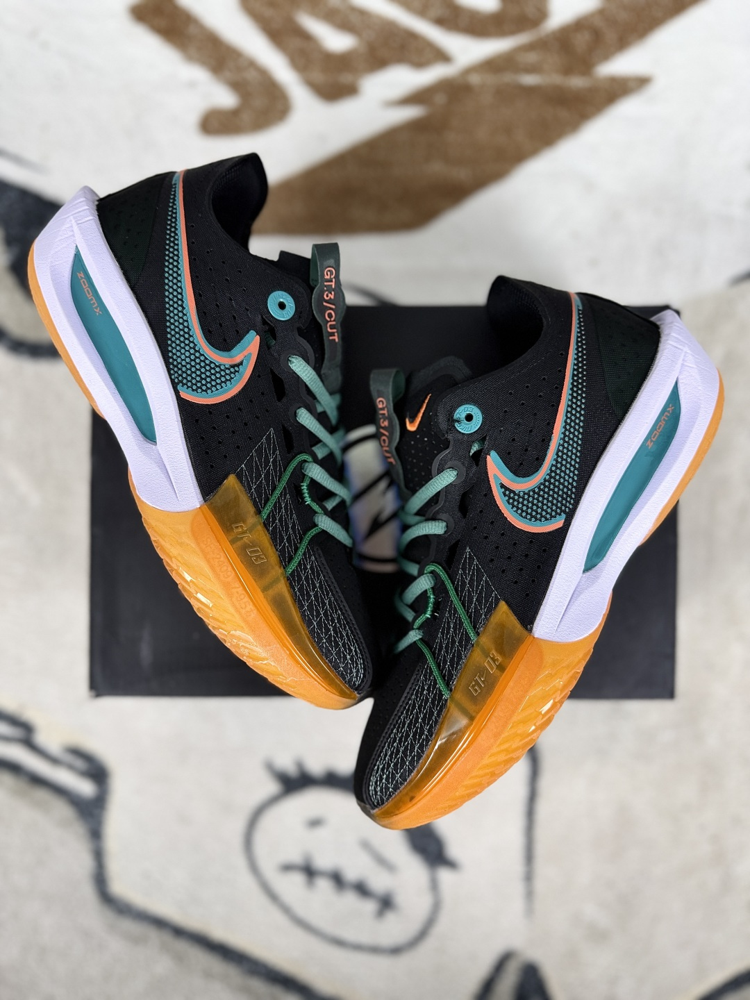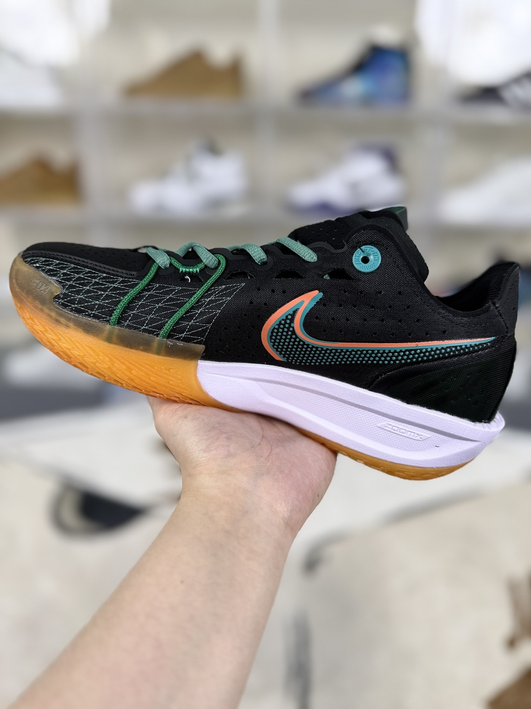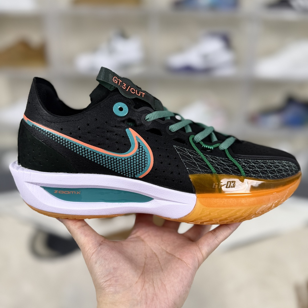 Nike Air Zoom G T Cut 3是一款实战性能与时尚设计兼备的篮球鞋 G T Cut 3的设计灵感来源于篮球场上的快速移动和精准投篮 整个鞋型充满了速度感和未来感 鞋面采用轻质材料或翻毛皮打造 结合Flywire飞线技术 提升了鞋子的透气性和包裹性 鞋舌设计独特 半开叉式搭配鞋带 减少鞋舌移位的风险 鞋侧面的Swoosh标志带有多个透气孔 进一步提升了散热性能 鞋底全掌搭载了Nike的ZoomX泡棉 提供出色的缓震效果和响应速度 减少了运动过程中的冲击力 保护双脚不受伤害 外底采用耐磨橡胶和独特的 人字纹 纹路设计 增强了抓地力 无论是在地板还是在室外场地 都能保持稳定的步伐 帮助球员在场上快速启动和急停 鞋面与中底的完美结合 为球员提供了出色的稳定性 减少了运动过程中的扭伤和受伤风险 低帮设计提供了更好的脚踝灵活性 适合需要快速变向和突破的球员