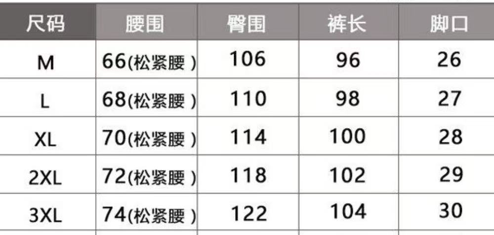 尺码 M 3XL