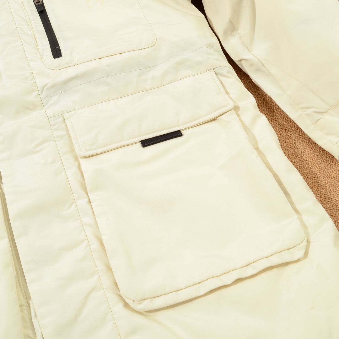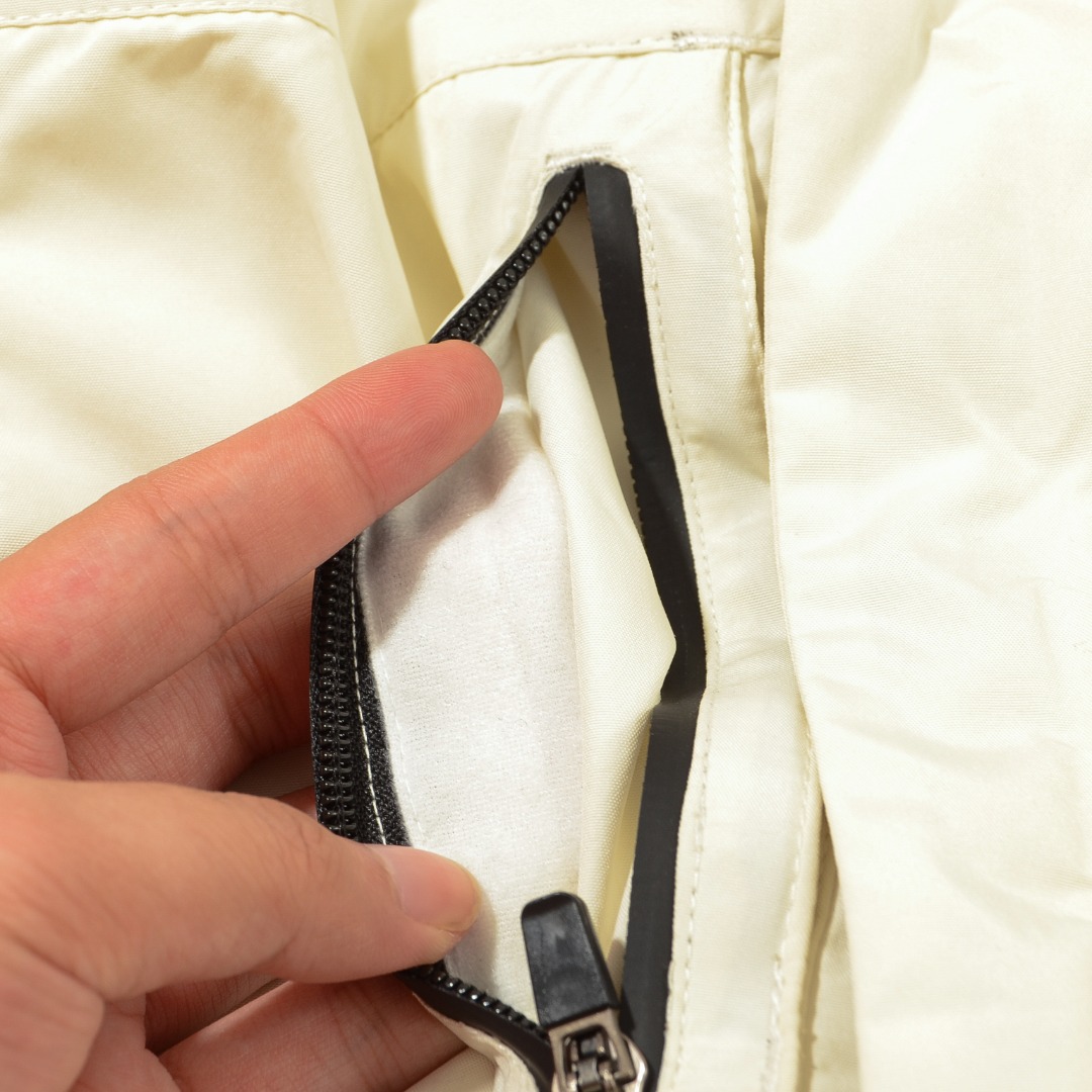 工装风多口袋设计 面料不是薄薄一层 是手感厚实的定制三防面料 防风防泼水 袖臂和前胸拉链都是采用防水拉链 户外穿着更保暖