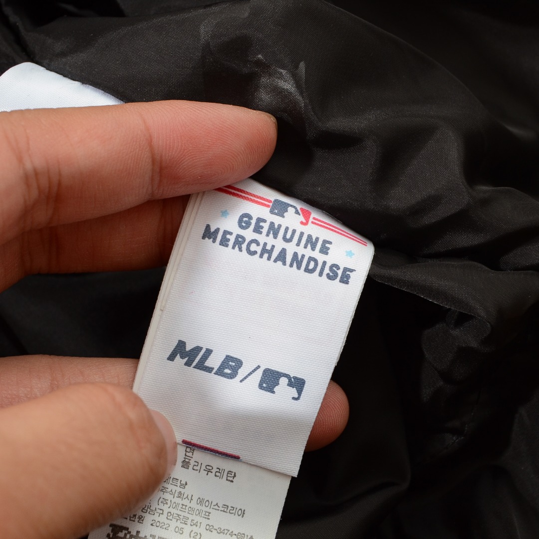 胸口重工贴布 刺绣 MLB标志性的NY logo 袖臂插袋饰有经典的硅胶标 品牌辨识度极强