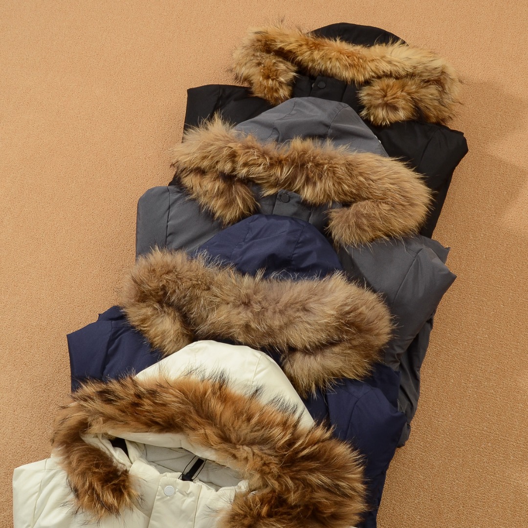 柔软真皮草毛领 大大的一整根貉子毛领 不仅挡风保暖 更加的显奢华质感 一眼贵价羽绒服