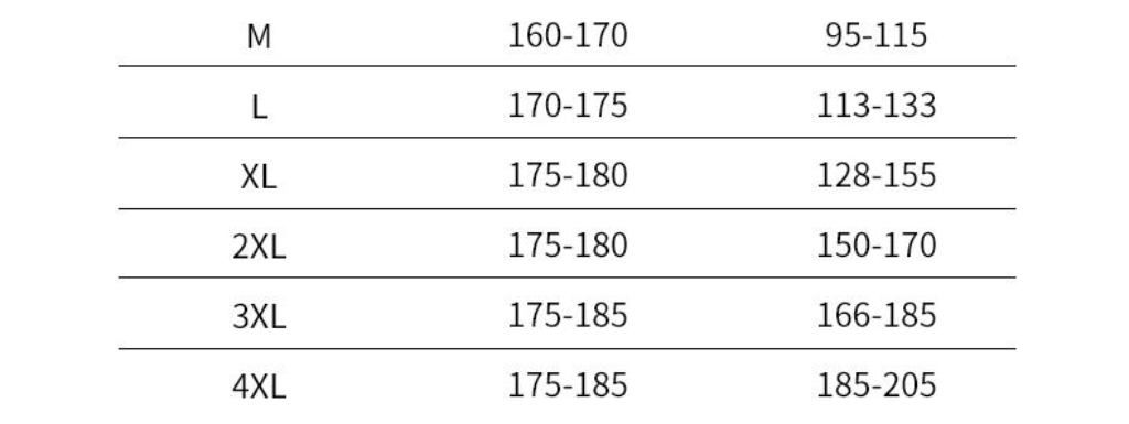 尺码 M 4XL