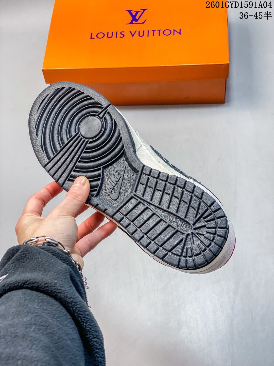 奢潮联名顶流 Dunk Low 老花款解锁潮流新高度 当 Nike Dunk Low 的经典滑板鞋型邂逅 LV 奢牌基因 CX5050 Y50 款直接将奢潮融合推至新境界 米白主调的鞋身以细腻皮革打造 鞋侧铺满浅绿老花暗纹 黑白撞色的 Swoosh 融入 LV 经典花纹元素 鞋身醒目的 LOUIS VUITTON 字母标识与 LV 刺绣标相互呼应 红黑小细节的点缀更是让整体设计层次感拉满 保留 Dunk Low 标志性的低帮鞋型与扎实脚感 既延续了滑板鞋的街头灵魂 又注入奢牌的精致质感 是潮玩收藏与日常穿搭的双重王者 上脚这双鞋 轻松拿捏奢潮混搭的高阶审美 走在街头 每一步都是对经典与奢华的全新诠释 码数 36 45带半码
