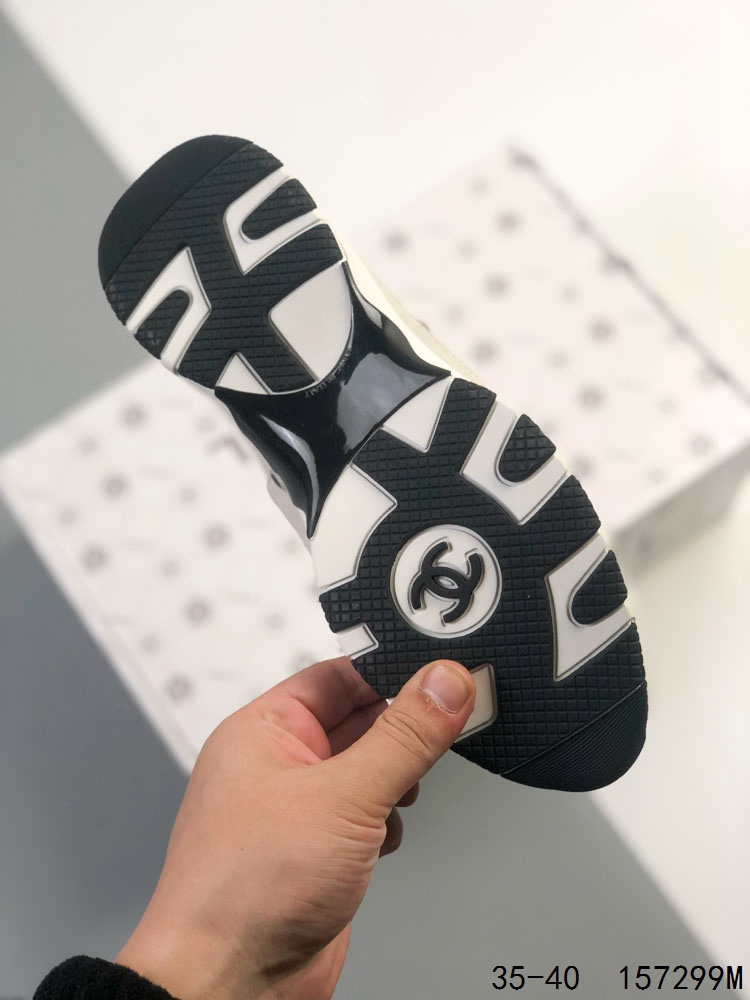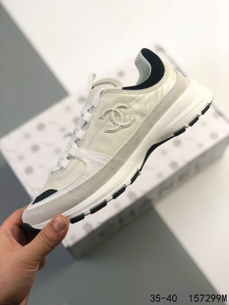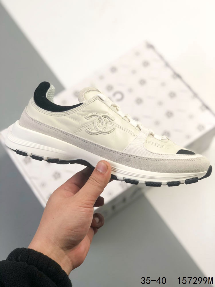 Chanel 香奈儿 25A 低帮休闲鞋 小红书各大平台爆款 官网同步上架 这款经典设计 鞋面多种工艺电绣的风格 大底却时尚运动 混搭非常好看百搭 休闲 时尚 运动 户外都能兼顾 鞋面采用 原版进口高丝光牛反绒 进口混种羊皮 内里采用 原版进口透气网 原版T组合大底 精品全套包装 尺码 35 36 37 38 39 40 ID 157299M