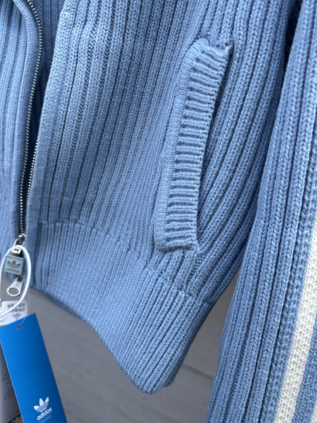 独家实拍上新 区别市面各种盗图以及网图版本 阿迪达斯三叶草女子条纹运动修身针织外套
