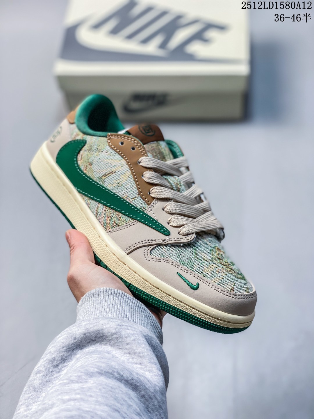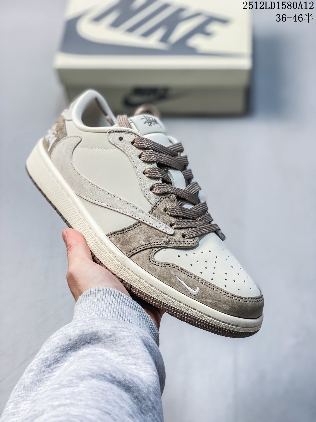 Travis Scott x Fragment Design x Jordan Air Jordan 1 Low OG SP Supreme联名 牛角灰 多方联名合作融合了Travis Scott 独特的音乐风格 藤原浩个性的设计风格以及Jordan品牌的经典元素 使其成为一双具有独特身份和价值的鞋子 清新而立体的外观加上联名标识更突出了其独特身份 这种配色方案显示出活力和时尚感 在视觉上引人注目 鞋身的质感和细腻的细节处理使其显得高端而格调十足 这款 倒钩 联名是设计与创意完美结合 融合多方的个性风格是一款备受瞩目的潮流鞋款 低帮休闲板鞋 定制鞋盒 大厂纯原品质出货 超高清洁度 皮料切割干净无任何毛边 细节完美