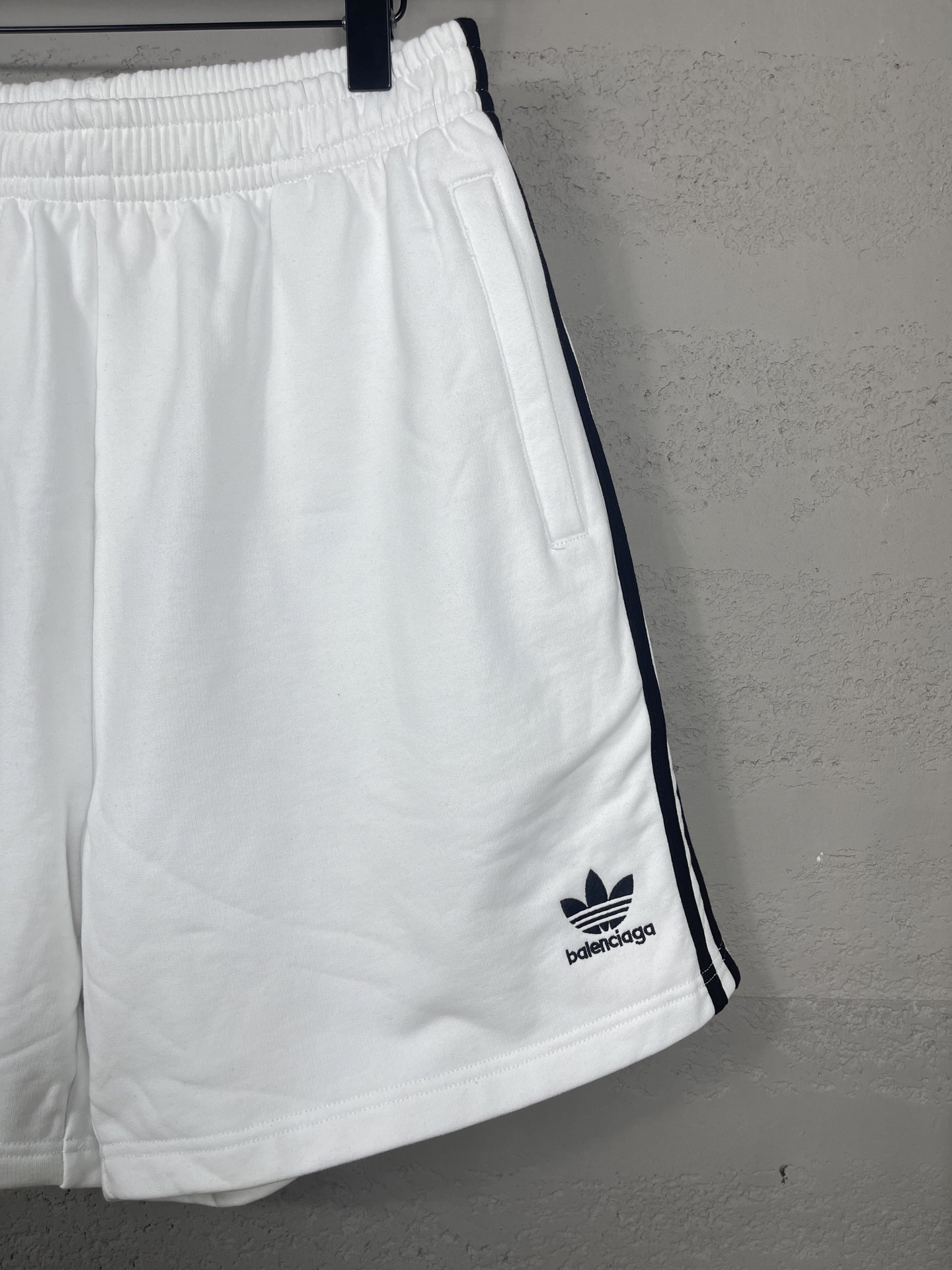 实拍图 顶级版本 官网品质 BALENCI GA 巴黎 2025新款 巴黎联名adidas 三叶草刺绣侧缝拉边条 袋口做隐形拉链短裤 砖柜同步 第一时间正品研制 欢印对比 面料采用巴黎ZP定织定染全棉毛圈大卫衣 克重460克 布面干净 布纹清晰 手感柔软舒适 刺绣采用进口田岛绣花机 字母清晰 效果立体 版型釆用宽松版型 男女同款