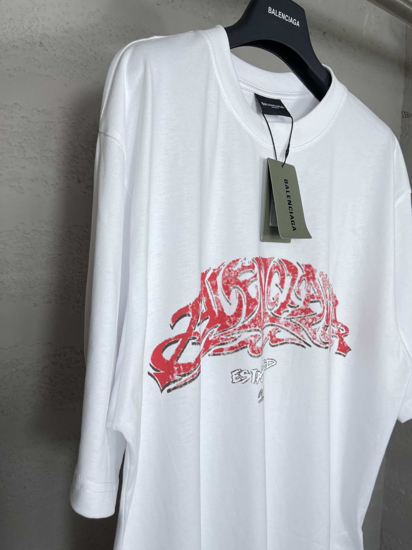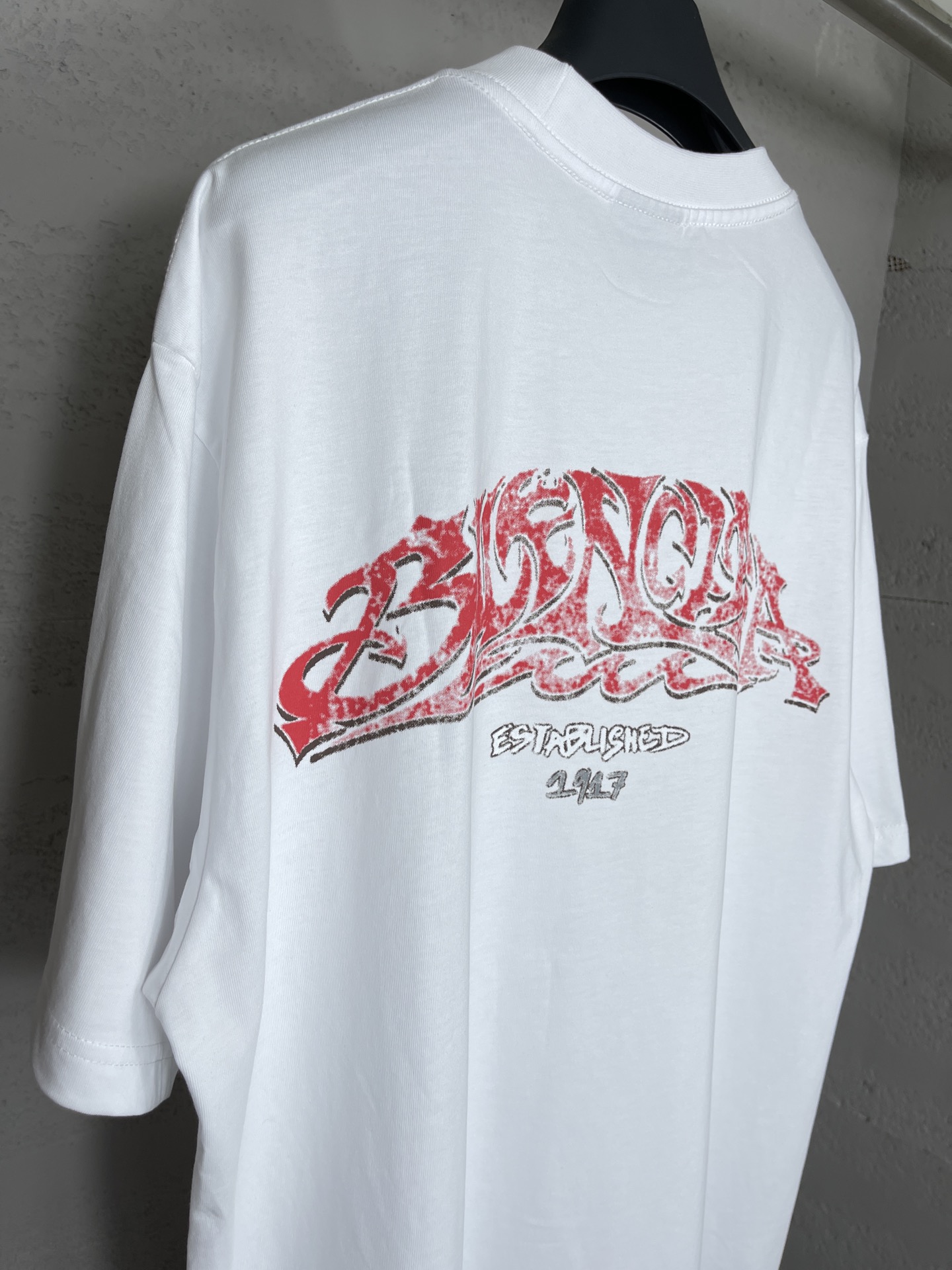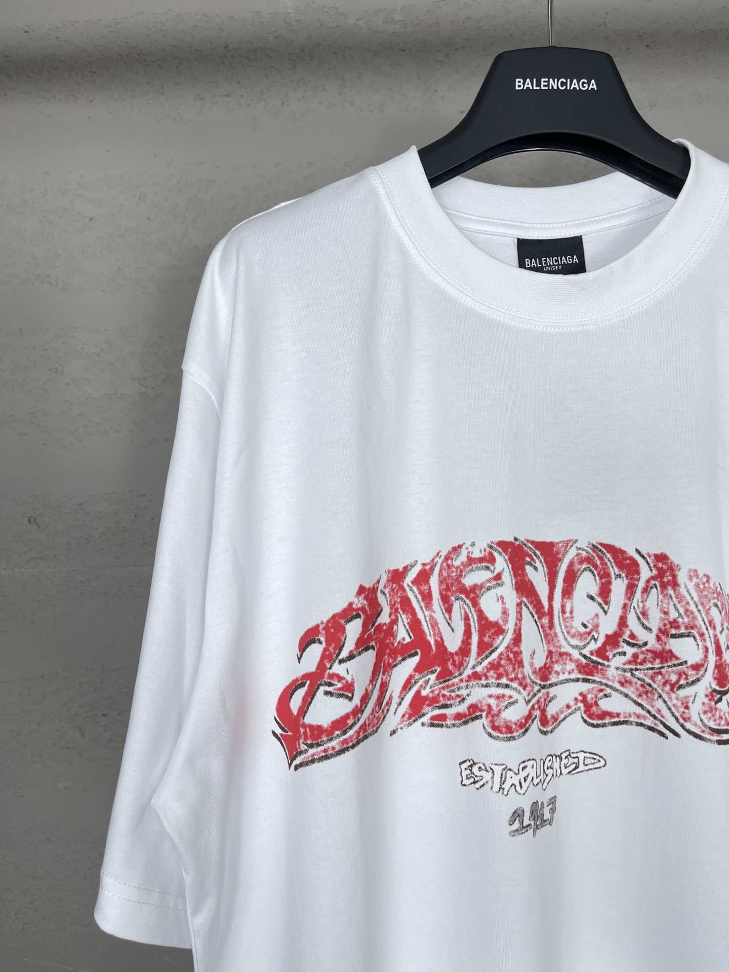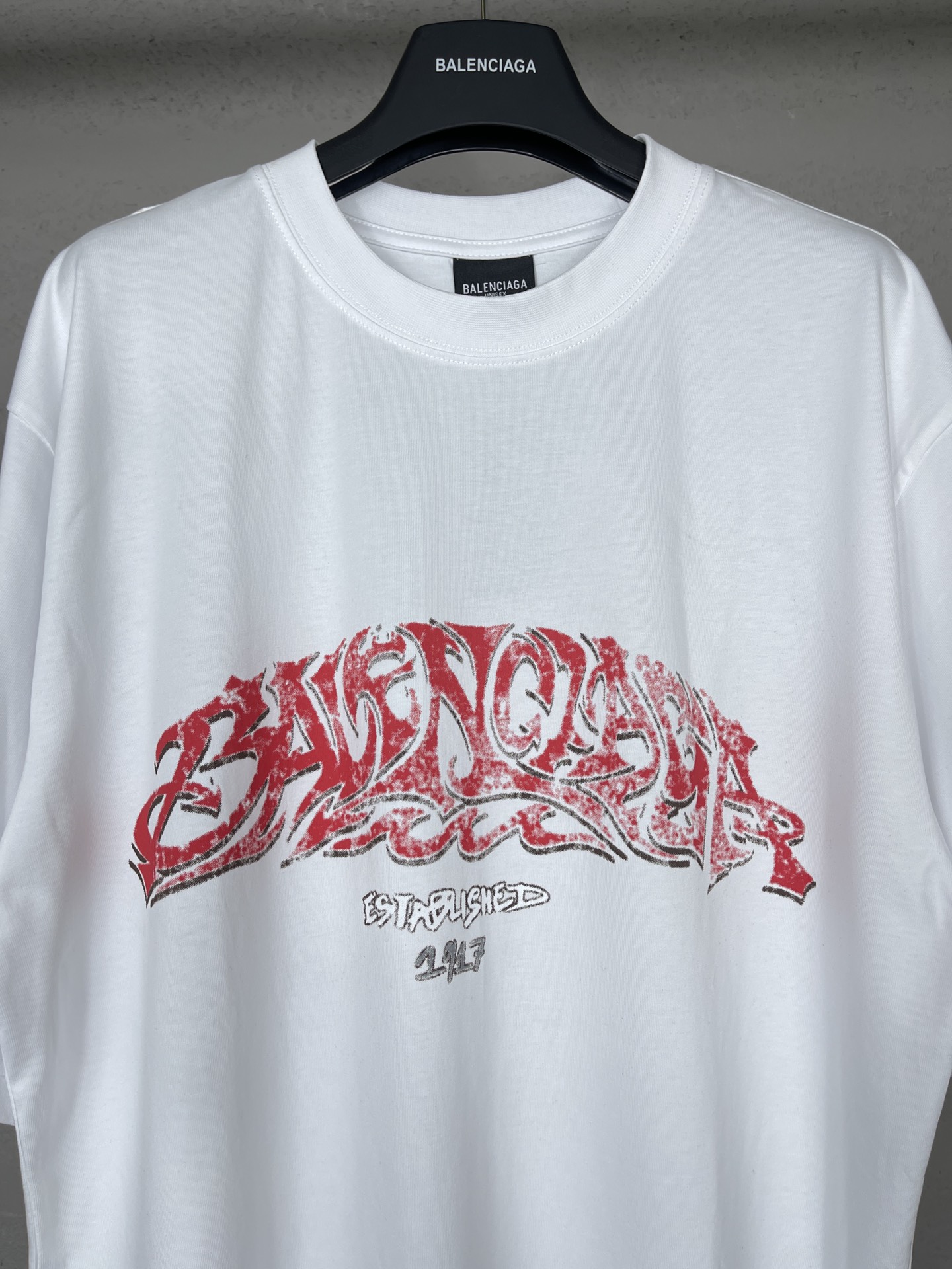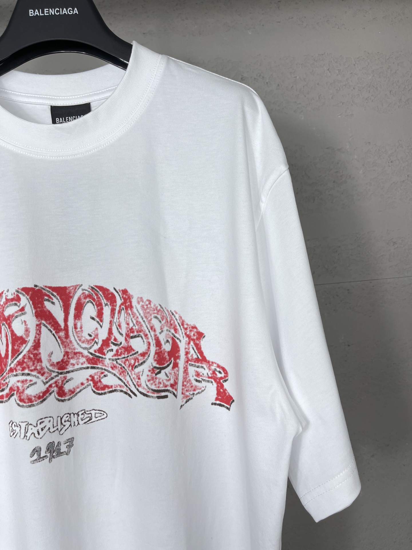 实拍图 顶级版本 官网品质 BALENCI GA 巴黎 2024最新火焰涂鸦直喷印花短袖T恤 砖柜同步 区别市场通货 YB开发 面料采用巴黎ZP定织定染全棉双纱紧密棉 克重260克 布面干净 布纹清晰 柔软舒适 螺纹釆用定染无色差 前后印花采用康丽机直喷印花版型釆用OS宽松落肩版型 男女同款