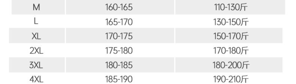 尺码 M 4XL