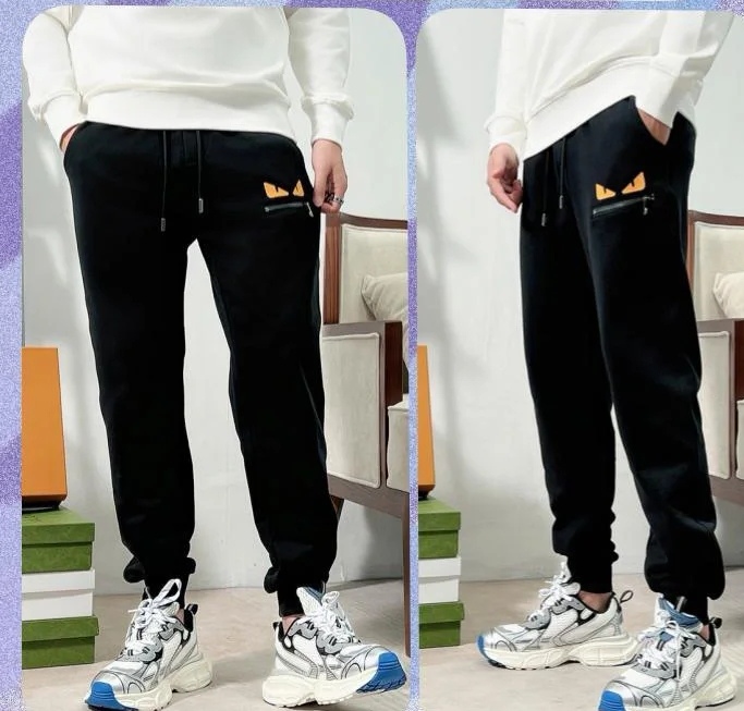 顶级最高版本 芬迪 fendi 经典刺绣花小怪兽恶魔眼睛情侣款卫裤