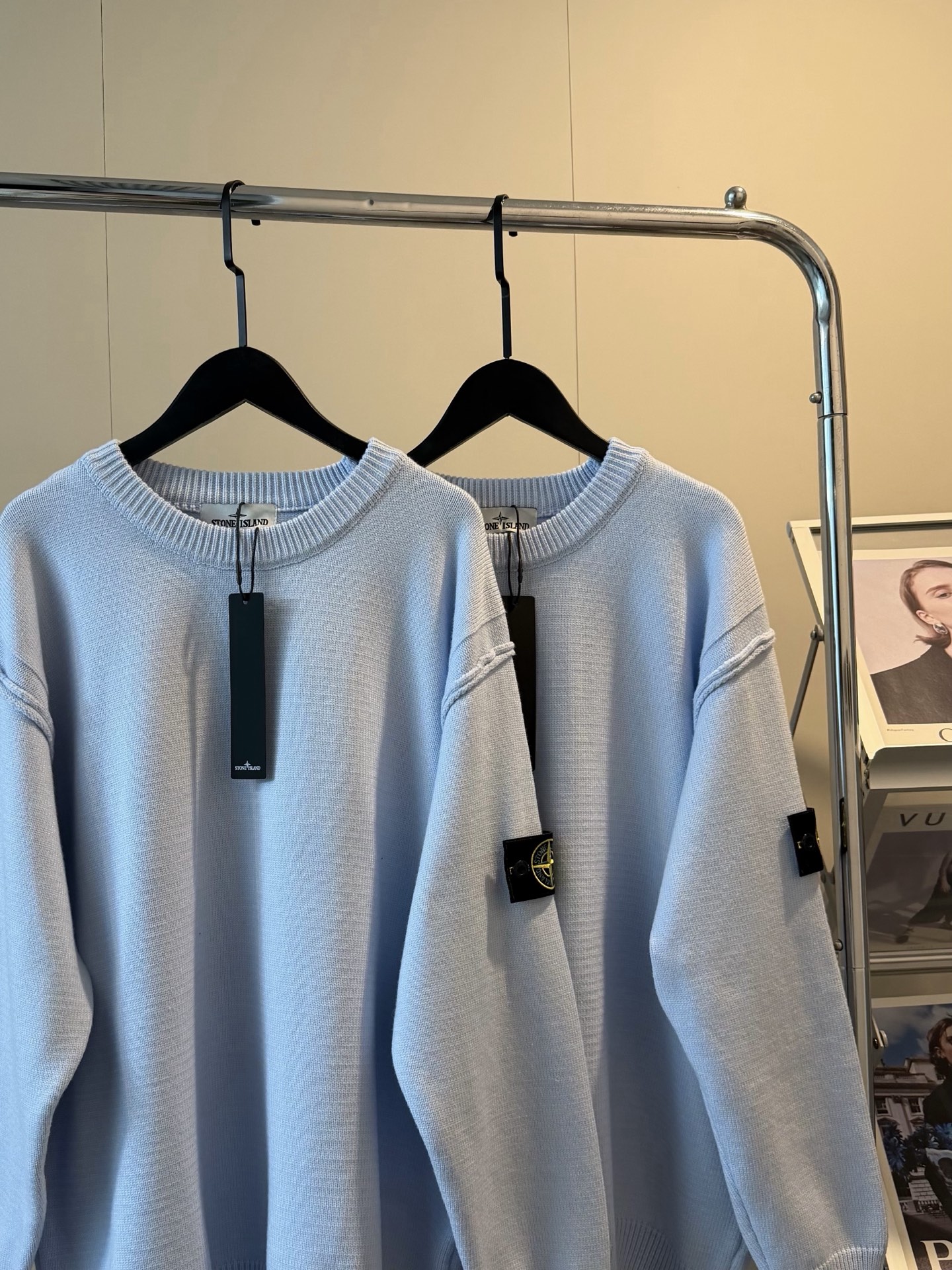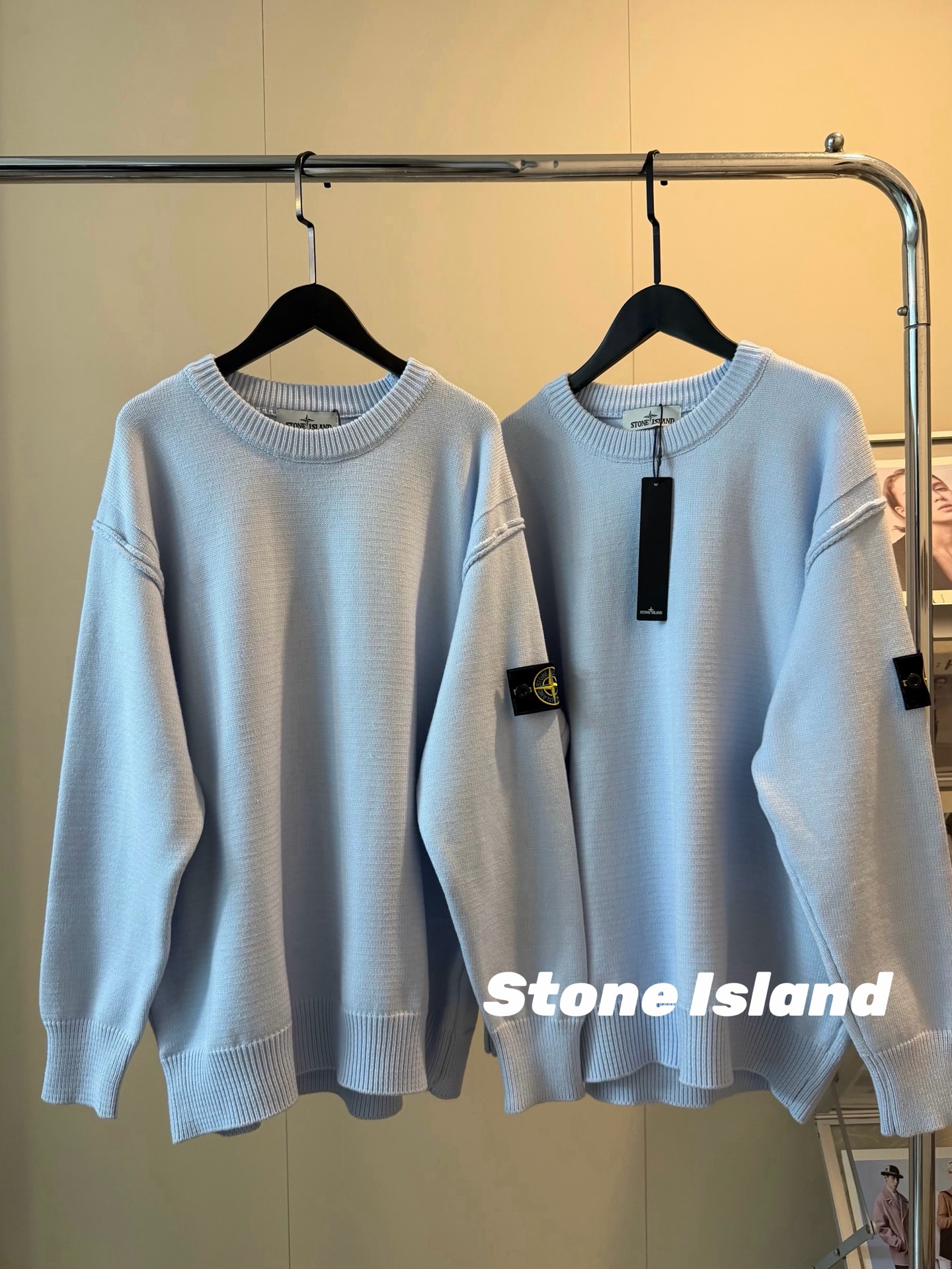 StoneIsland石头岛新款臂章奶蓝色羊毛针织毛衣