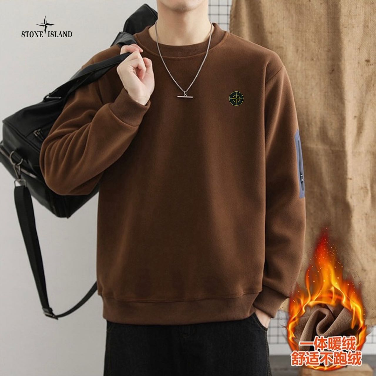 采用高密摇粒绒针织面料 舒适透气 有质感 做工精细 走线规则 落肩袖宽松版 不挑身材 男女同款情侣款