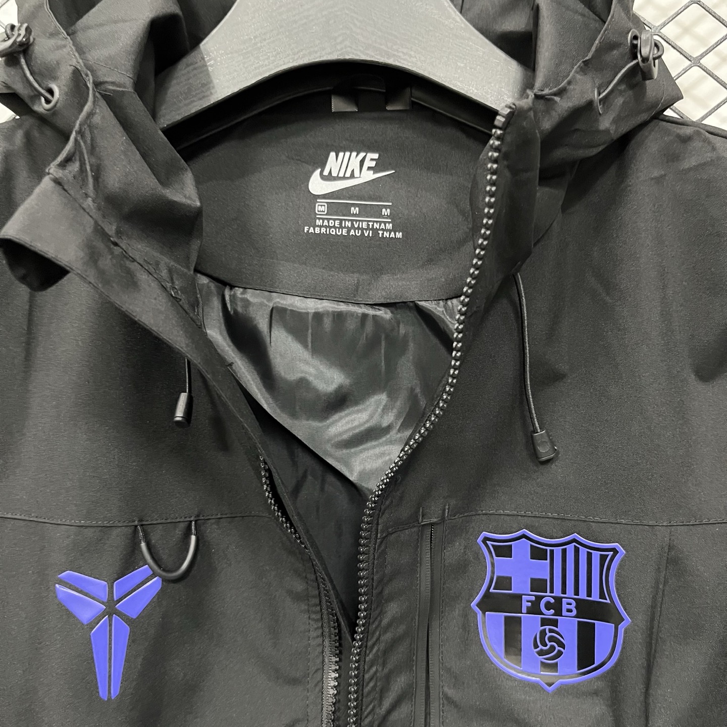 售后不停 耐克 Nike 足球 科比联名 巴塞罗那队 休闲简约连帽 户外 登山防水防风透气冲锋衣 多拉链口袋设计情侣 男女款 黑色 白色S 3XL