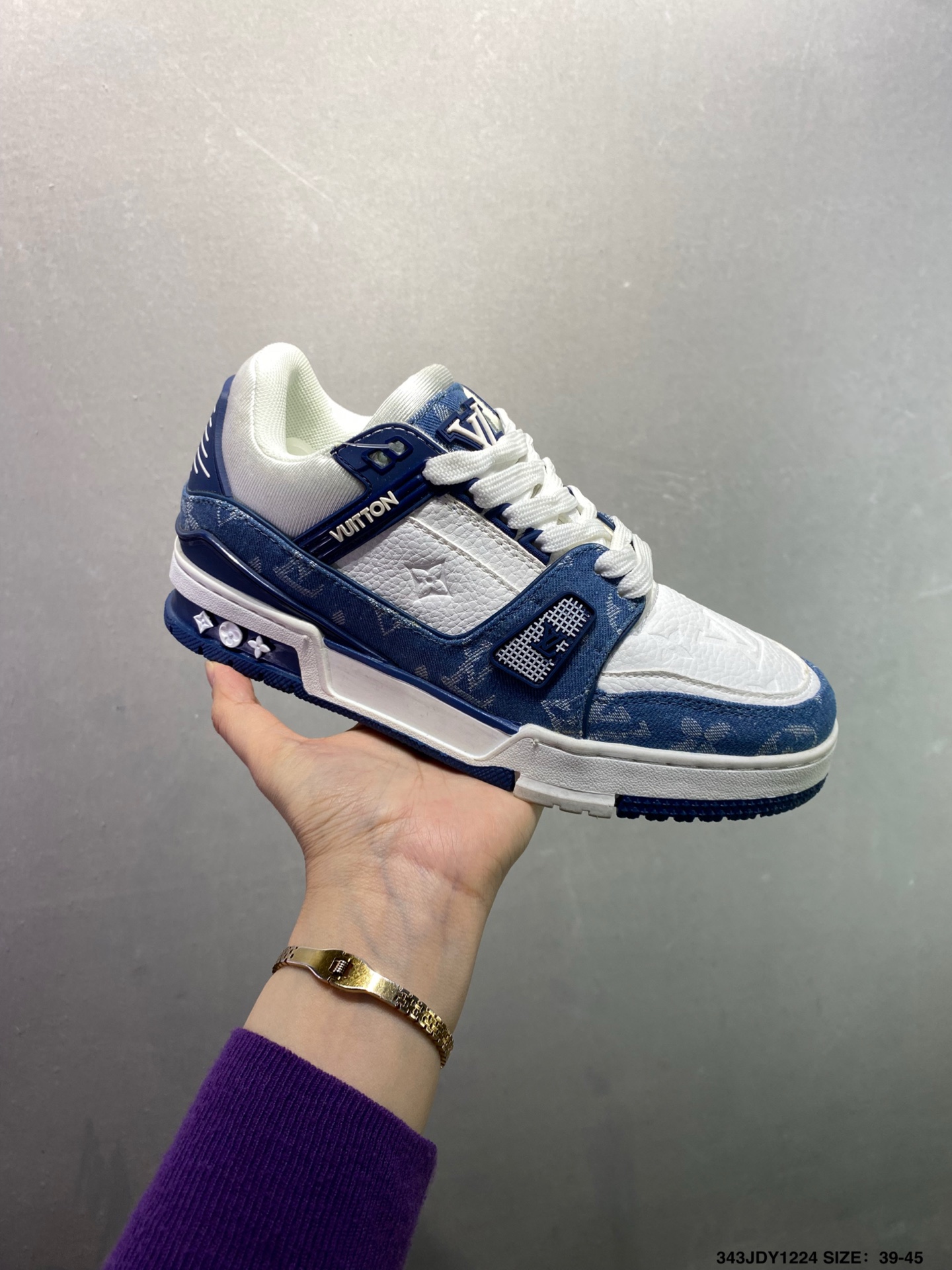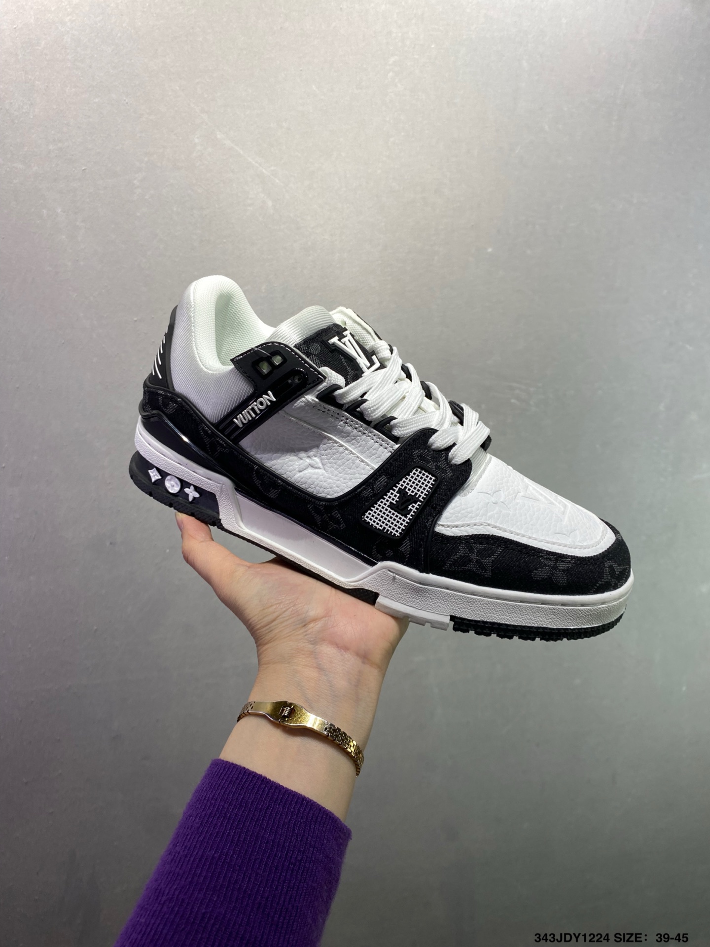 新款 LV Trainer最新配色运动鞋 L家 篮球鞋风格运动鞋 该鞋由艺术总监 VIRGIL ABLOH设计 垫脚聚米微料加透气英伦网布 细节原版一致 Size 36 45 如图 ID 343JDY1224