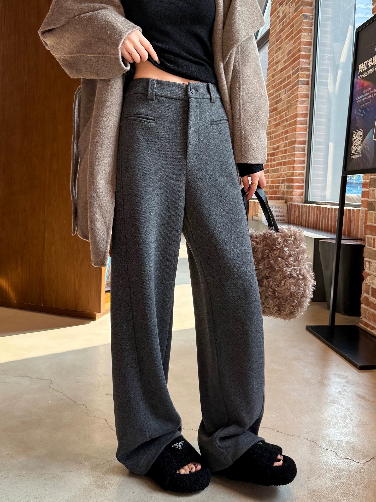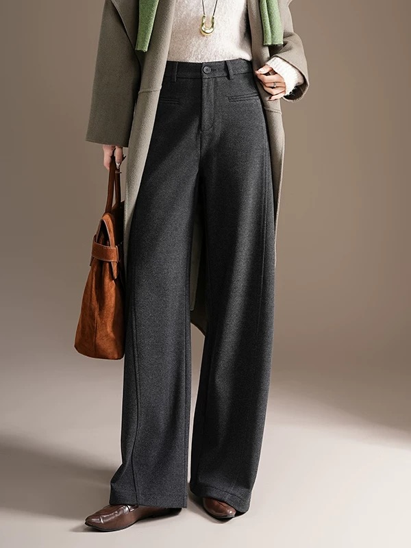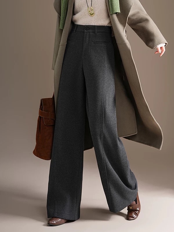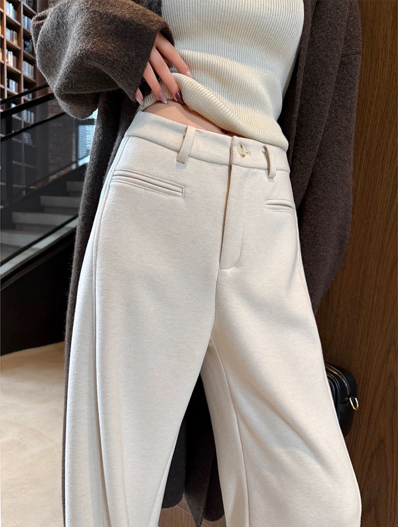 97199633 - 韩国冬季加绒醋酸绵羊毛设计感信封一字口袋高腰显瘦百搭直筒裤 413601