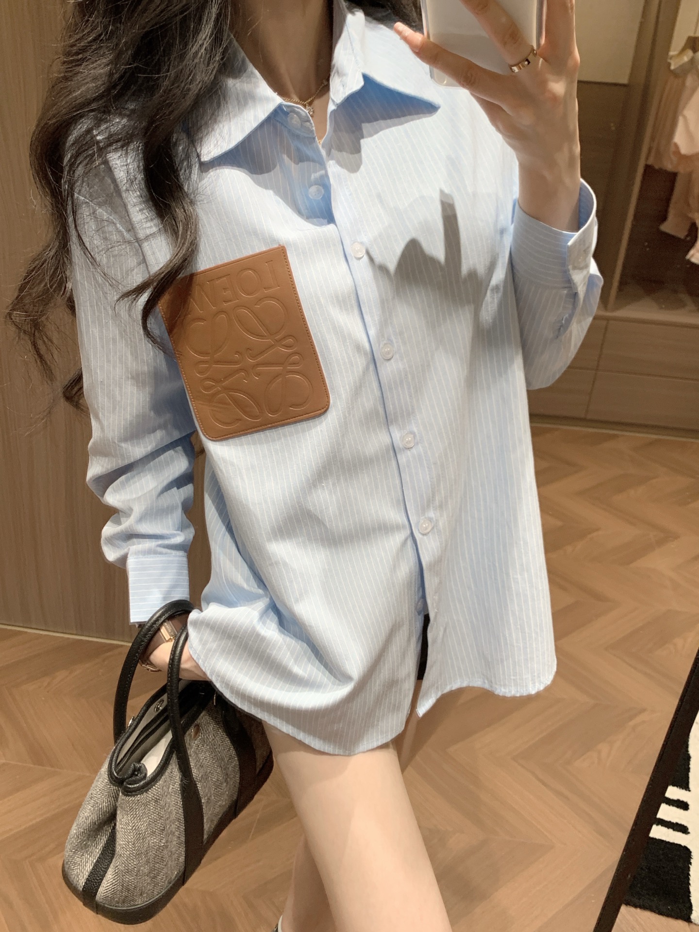 Loewe罗意威定制字母logo皮牌条纹衬衫