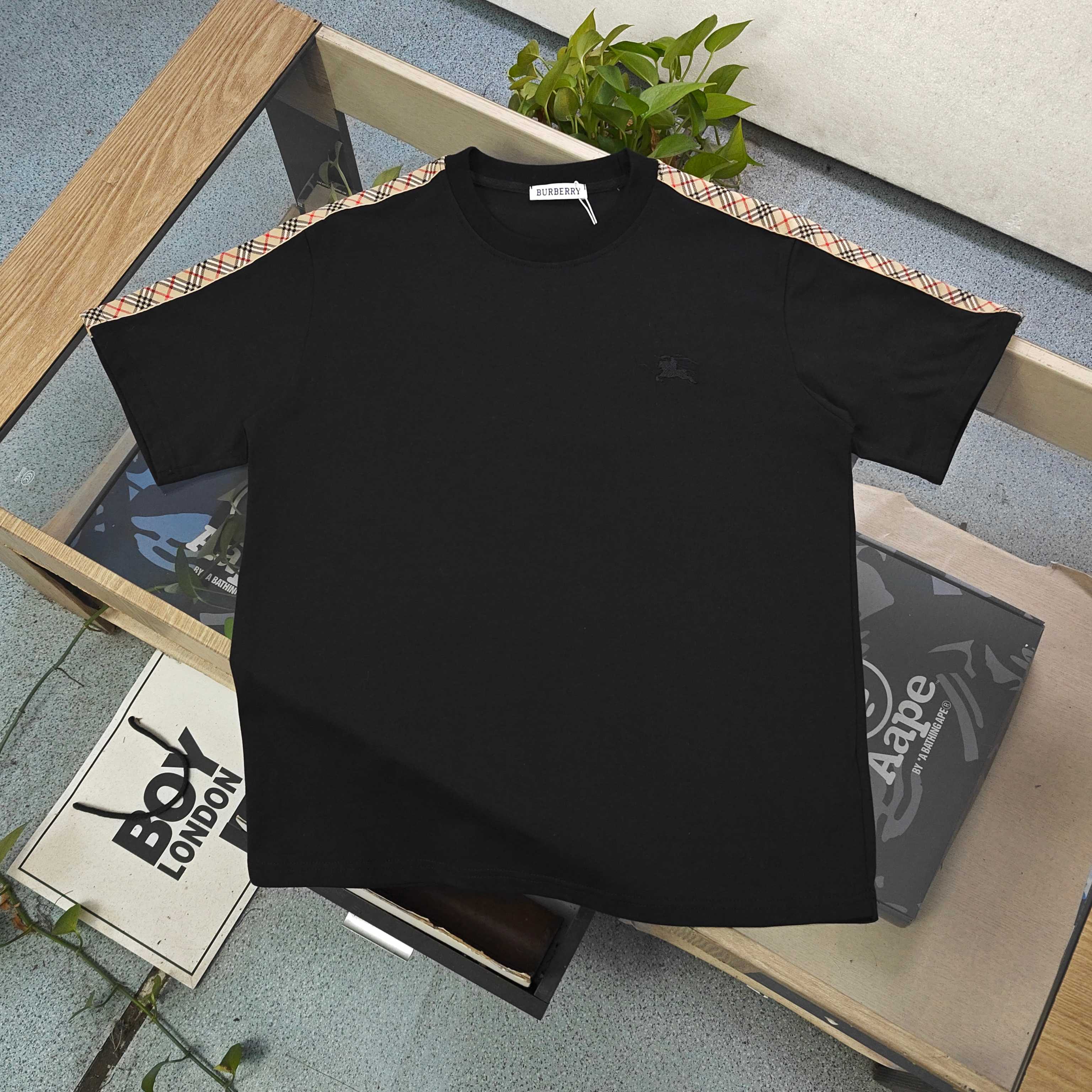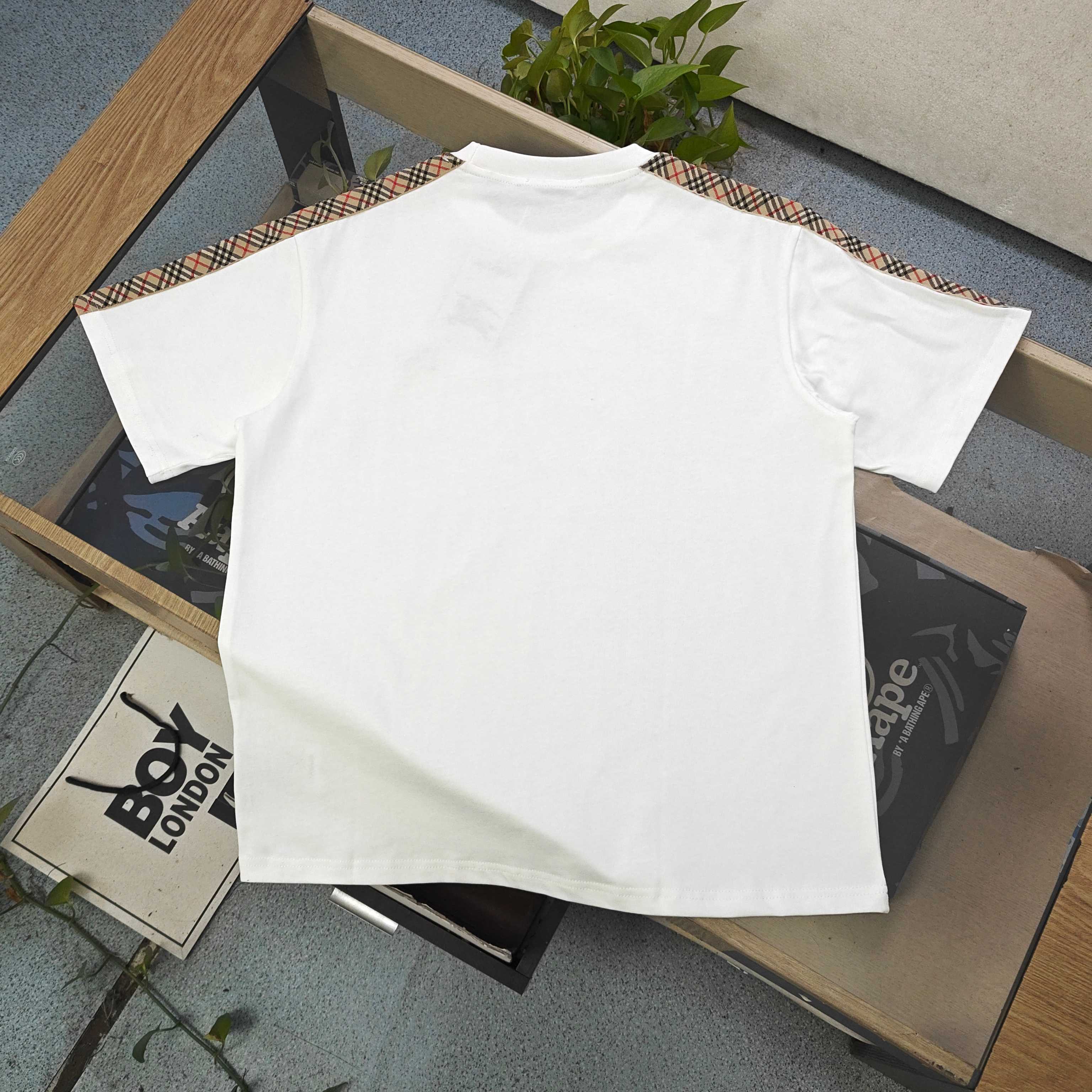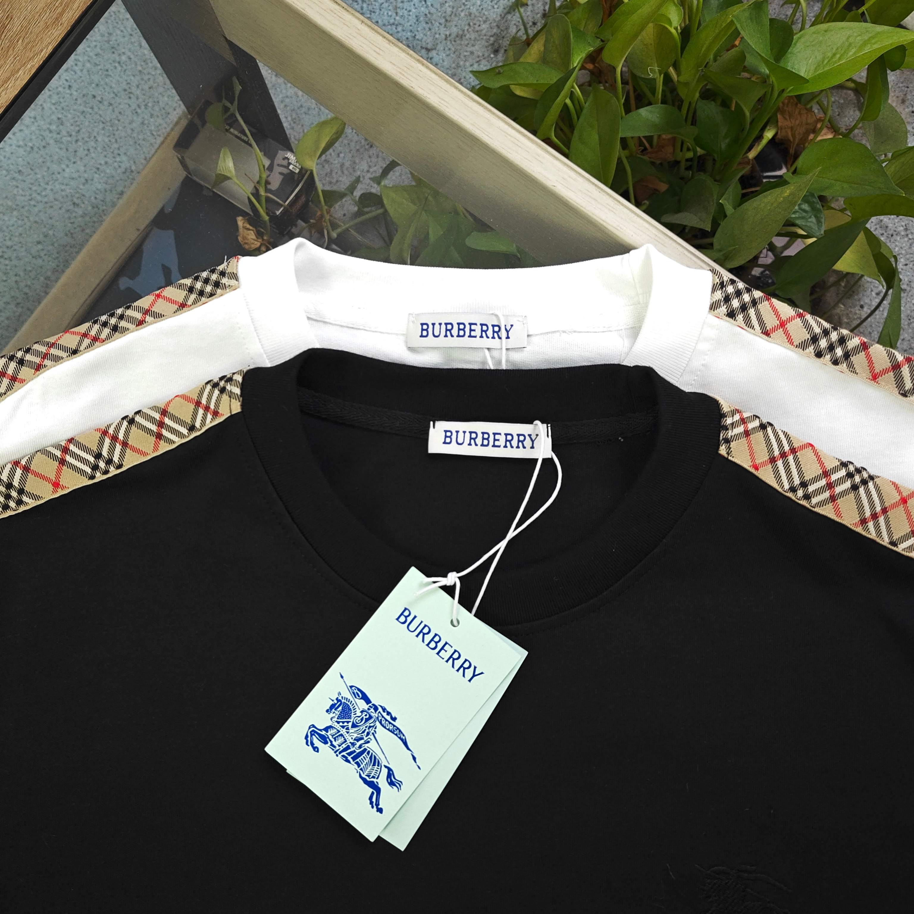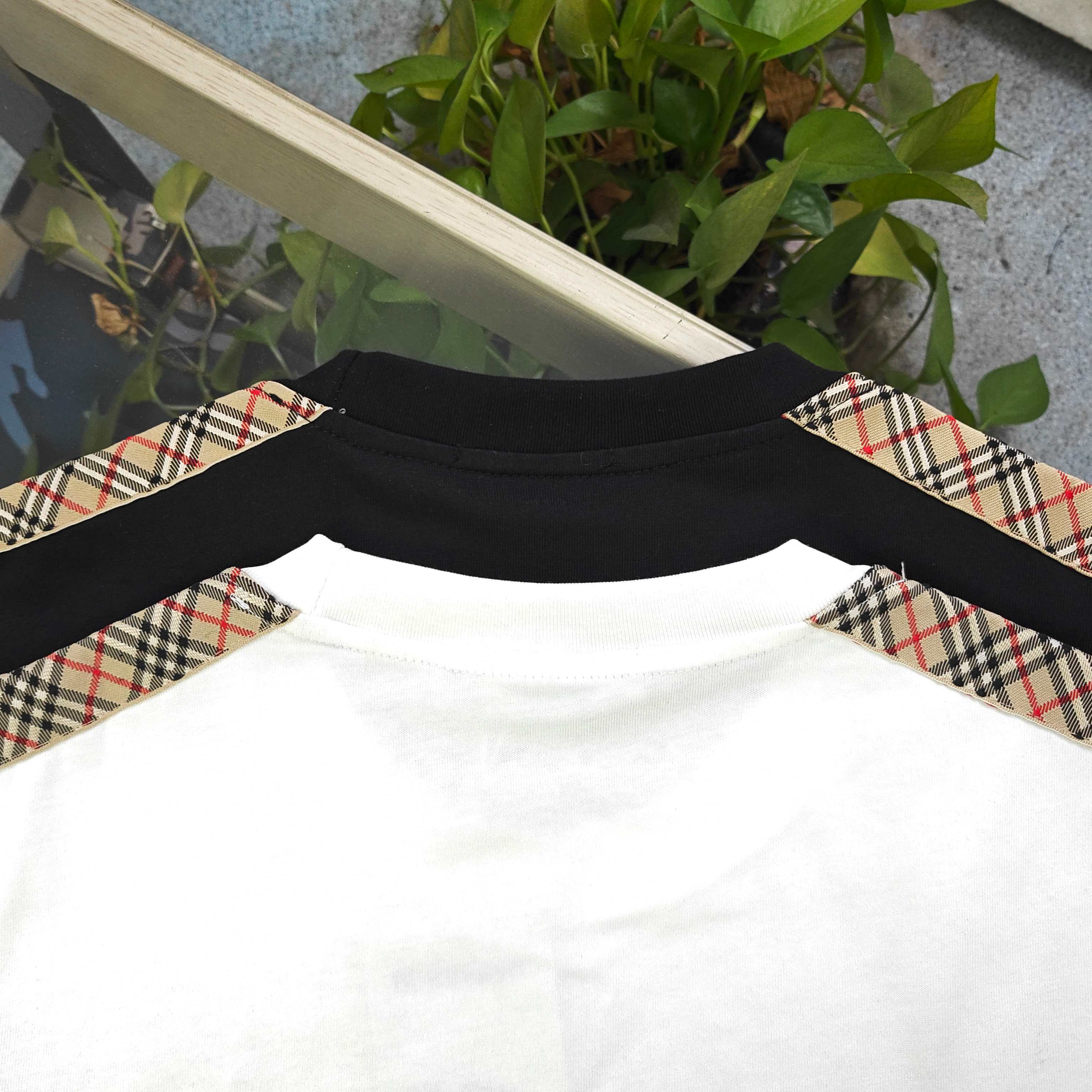 2026新款Burberry巴宝莉博柏利经典肩部织带条纹logo休闲情侣圆领短袖T恤 采用32支双纱精梳纯棉爽滑手感 纯棉不起球不起毛 面料厚度270克重 质量保证 定制面料 定制定染 包浆印刷环保不开裂 欢迎对比质量 男女同款
