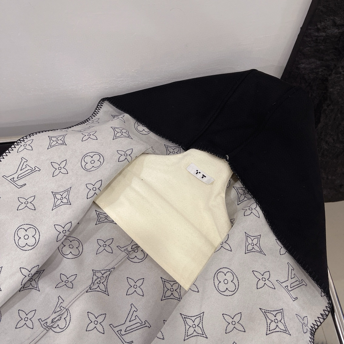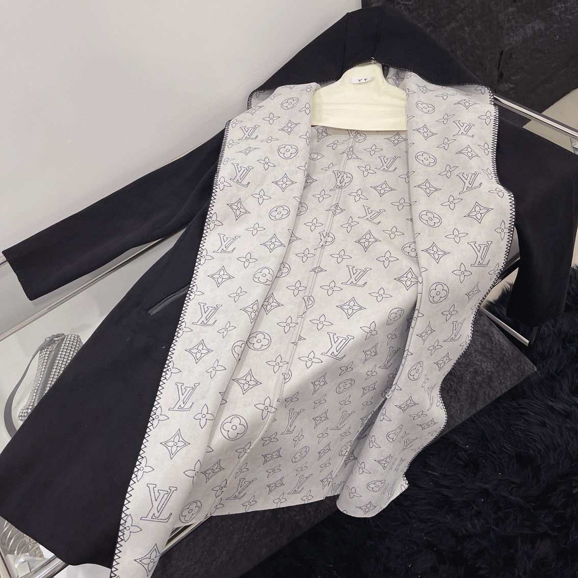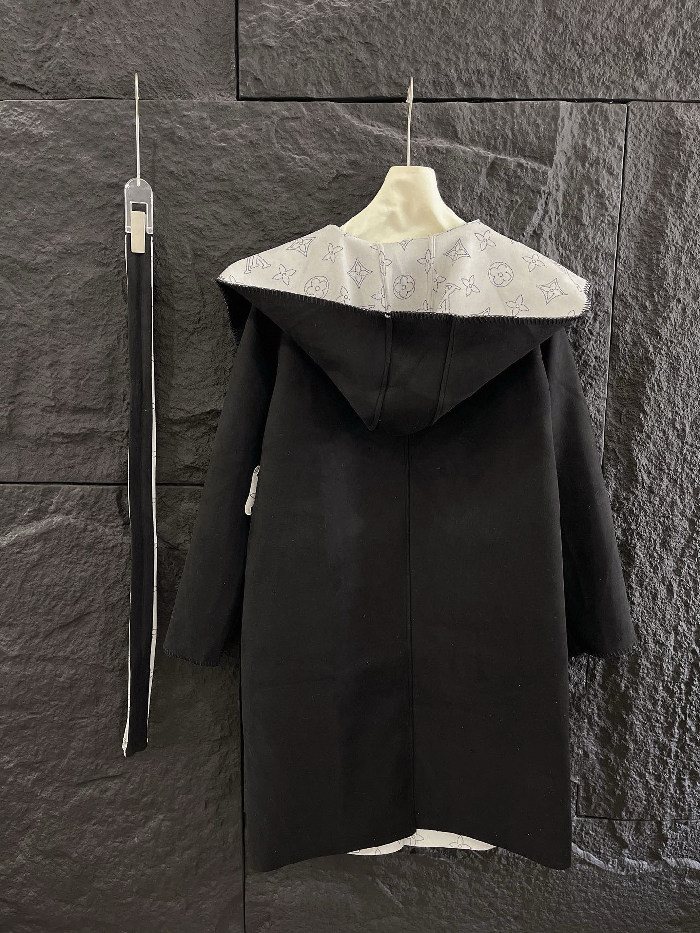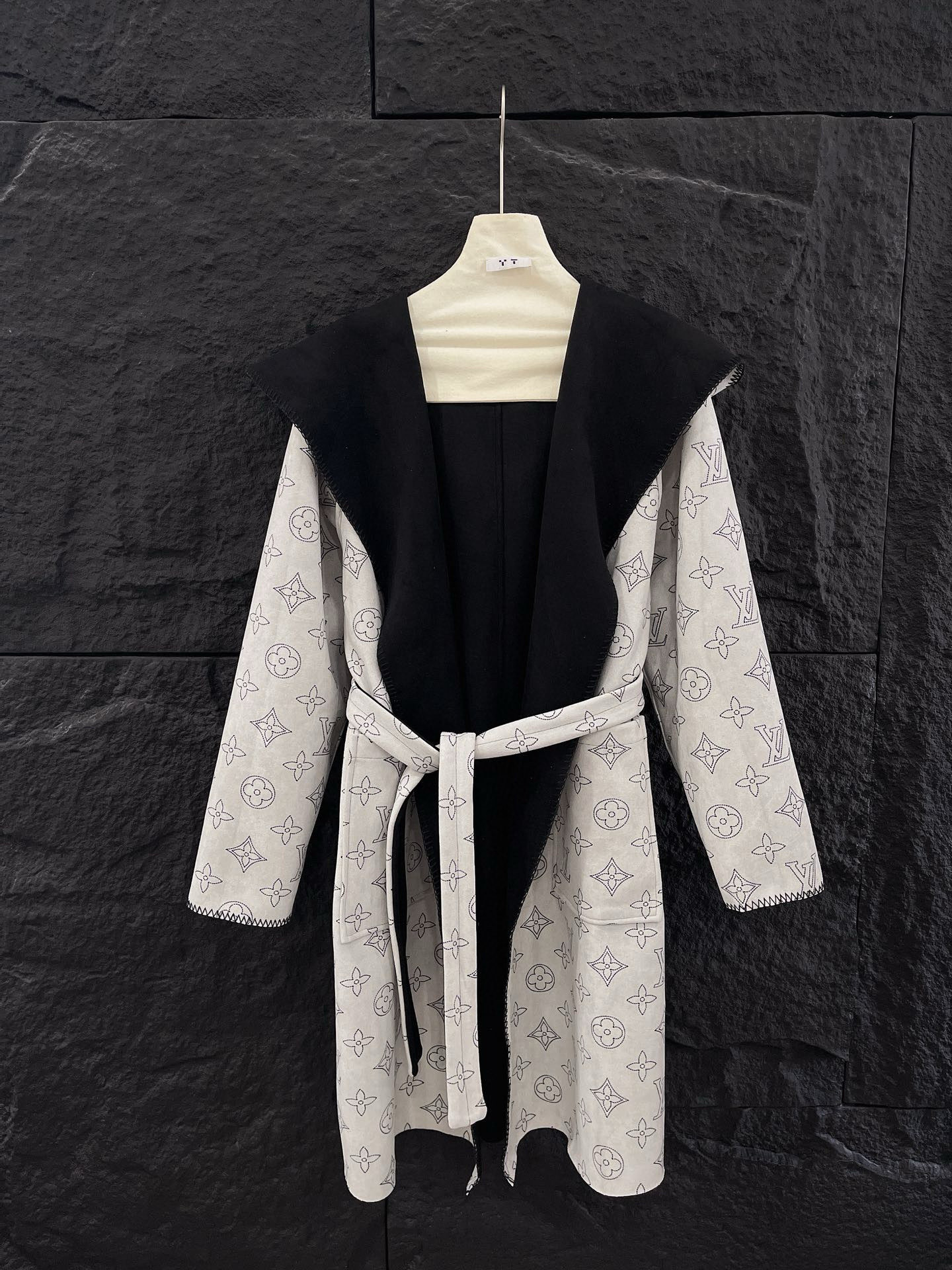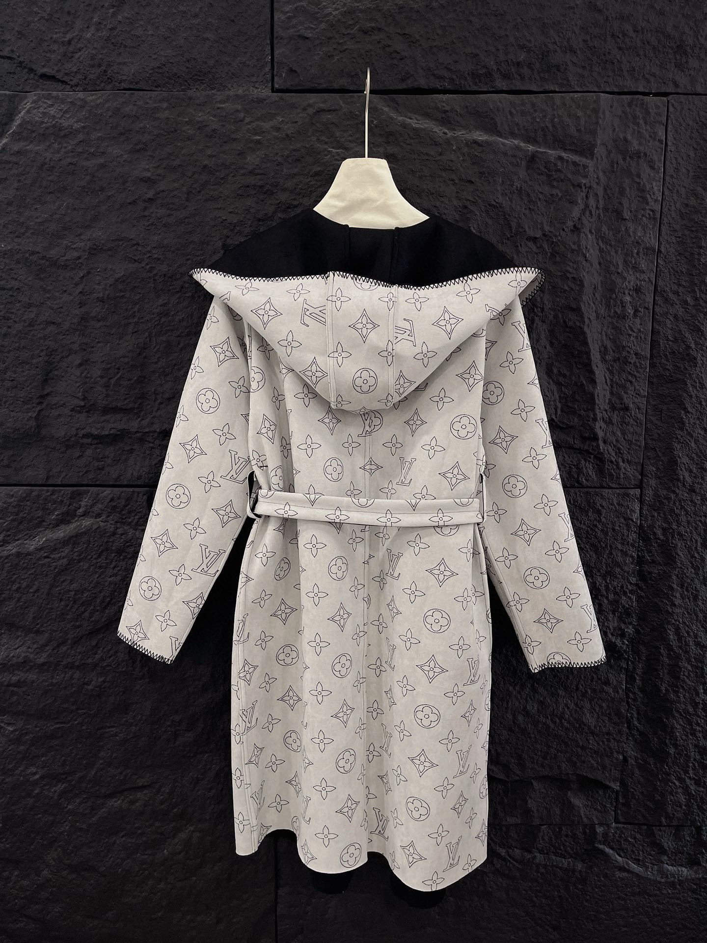 Louis Vuitton LV 驴家满印老花四叶草字母印花连帽大衣外套配腰带 双面穿