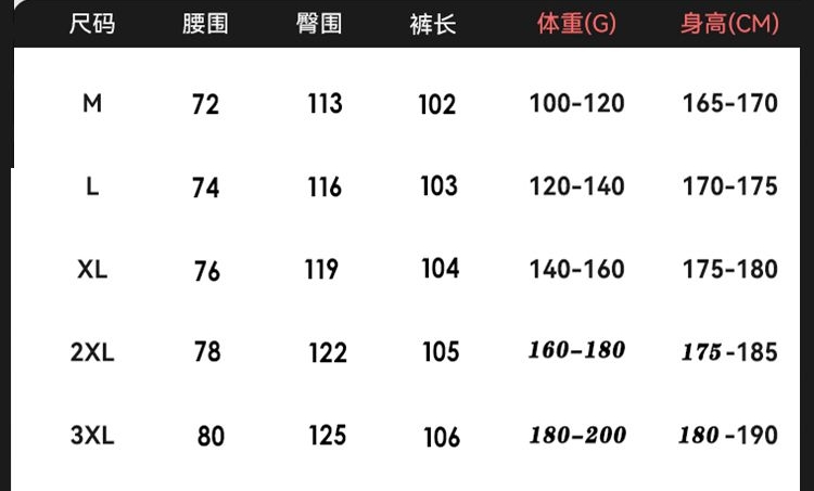 尺码 M 3XL