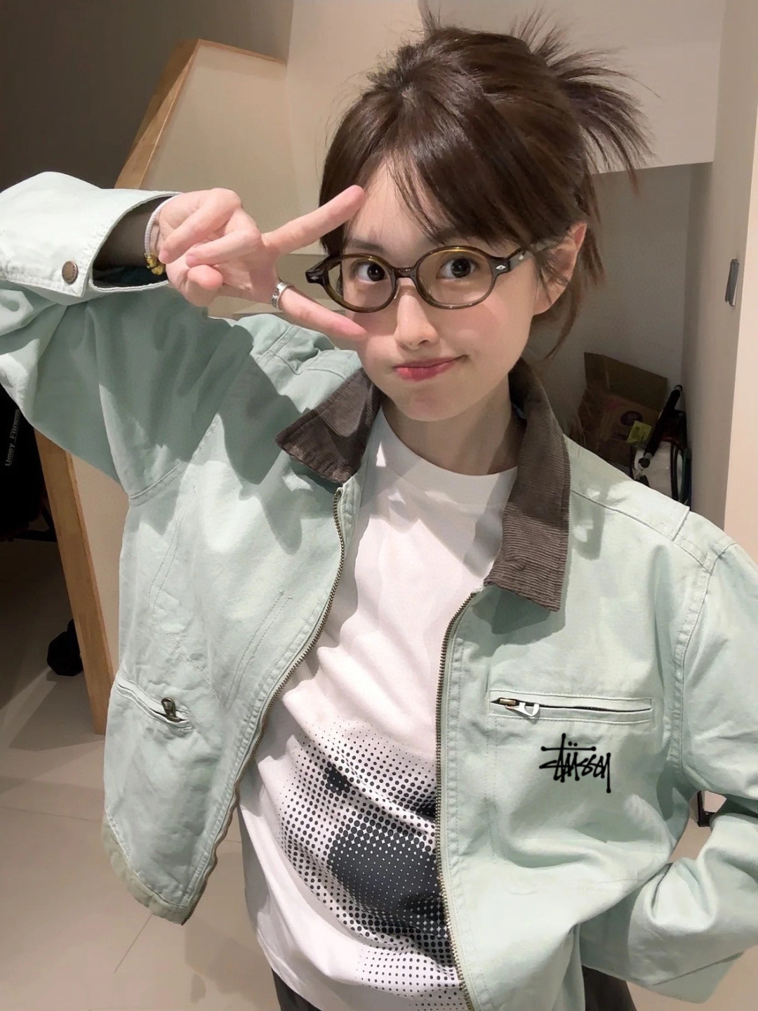 Stussy 斯图西牛仔水洗海蓝色复古面料翻领情侣同款印花外套