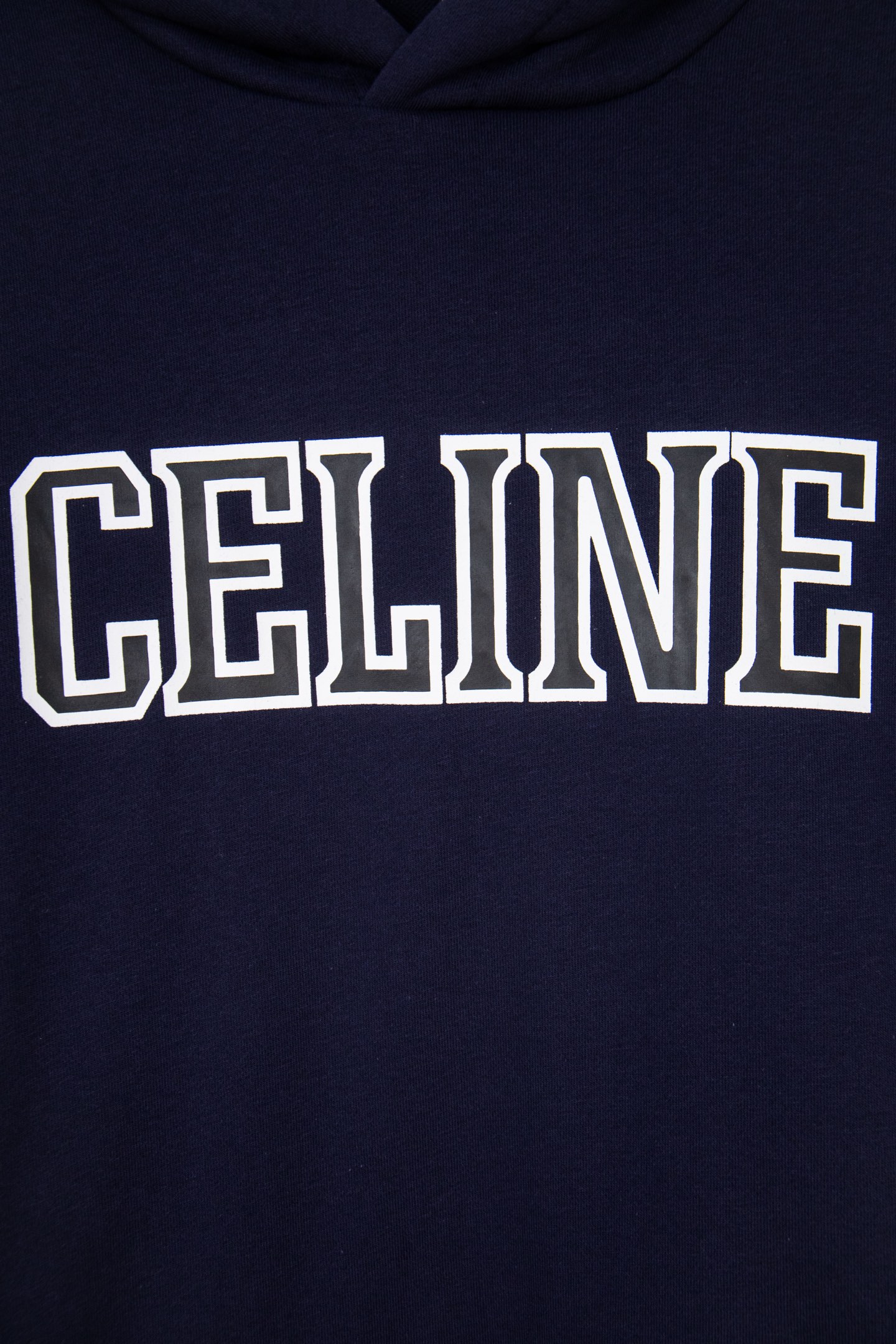 CELINE 赛琳2025秋冬新款拼接撞色袖肩字母logo印花连帽卫衣 宽松休闲的剪裁 撞色拼接的设计 将袋鼠式大口袋的连帽卫衣演绎的既有度假风又充满学院风 航海系列的加持下采用了海军蓝大身 胸口白色的镂空大字母logo印花 植绒工艺高级又显现立体质感 巧妙的把简约直白的辨识度表现出来 袖臂处的白红拼接形成了鲜明的撞色效果 也是整体的点睛之笔 男女均可上身 拥有青春风暴的减龄神器 时而在度假时而在校园的情景百搭 430克全棉毛圈 正品级