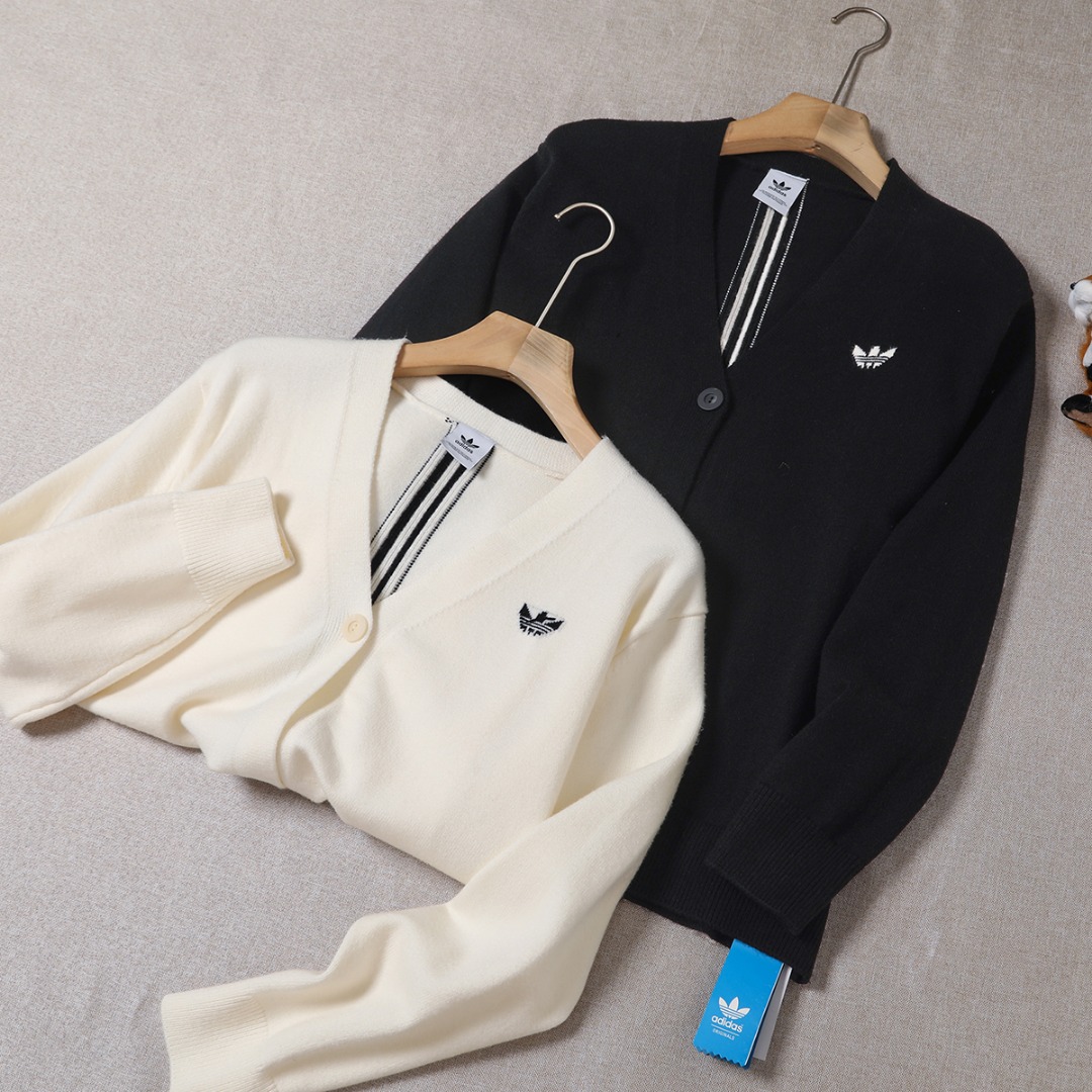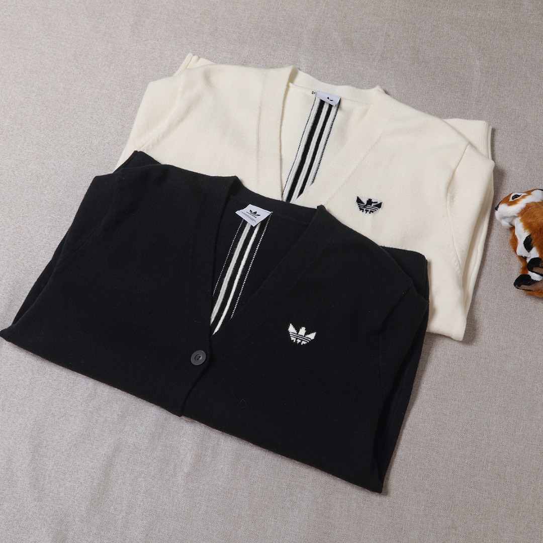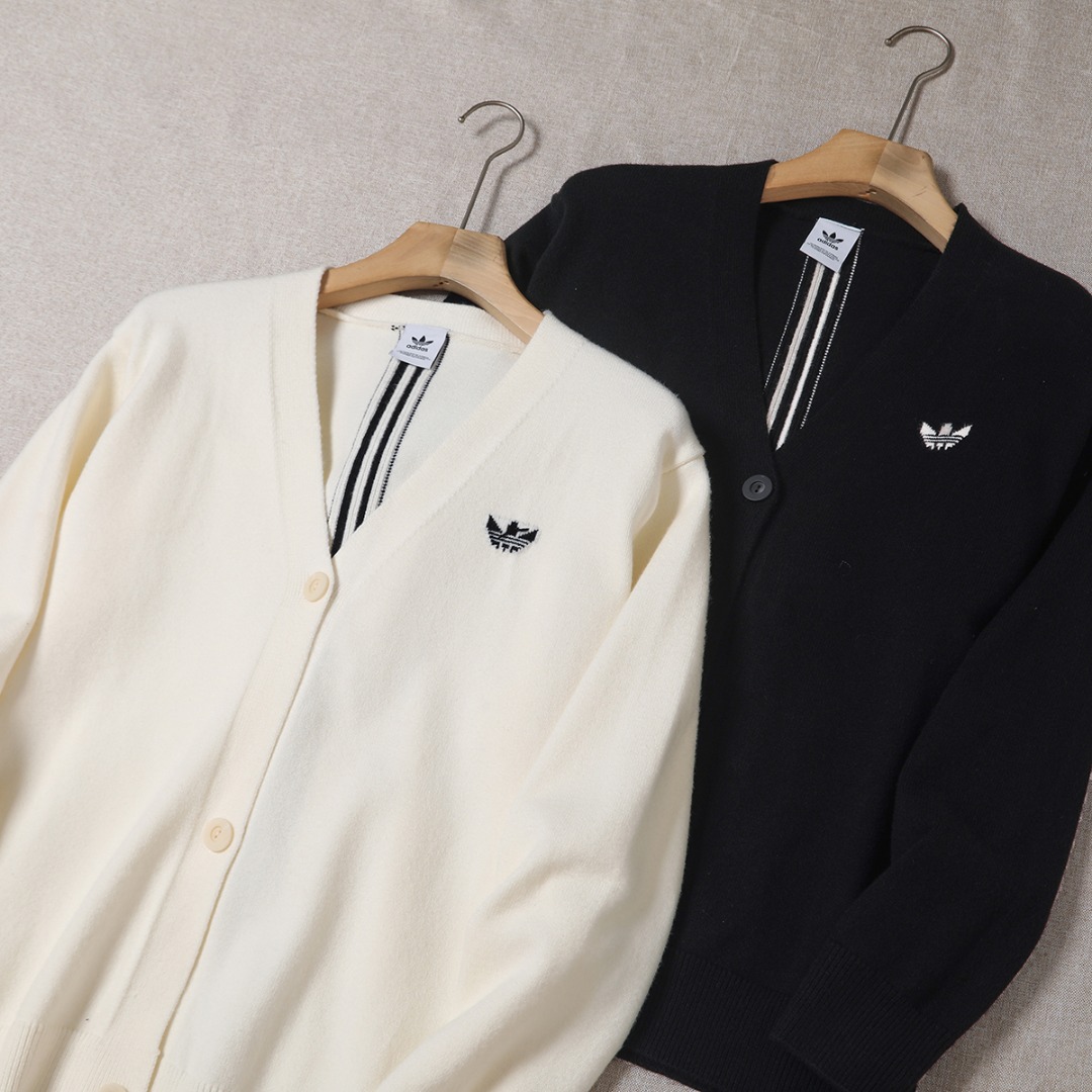 145126053 - adidas 阿迪达斯毛衣开衫经典V领 排扣设计超显瘦 男女 361380