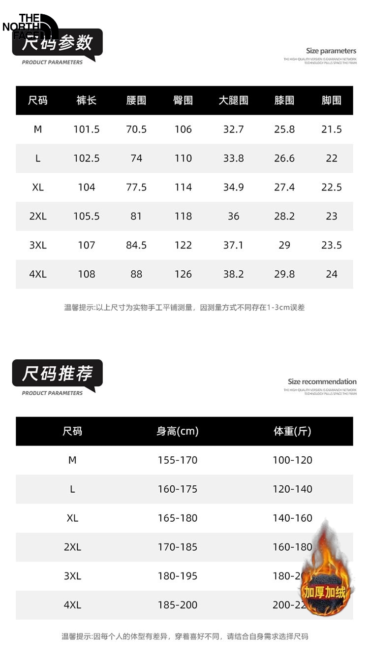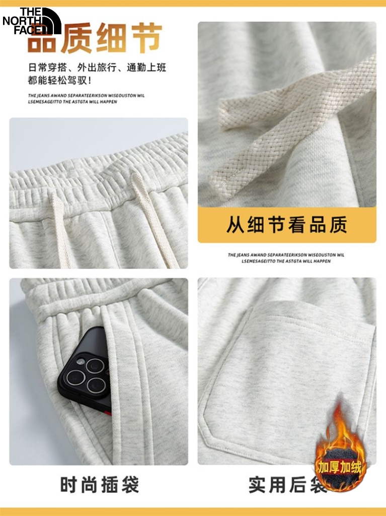 北面The North Face冬季新款 男女同款松紧腰加绒加厚保暖奥粒绒卫裤 男士休闲裤 保暖裤长裤