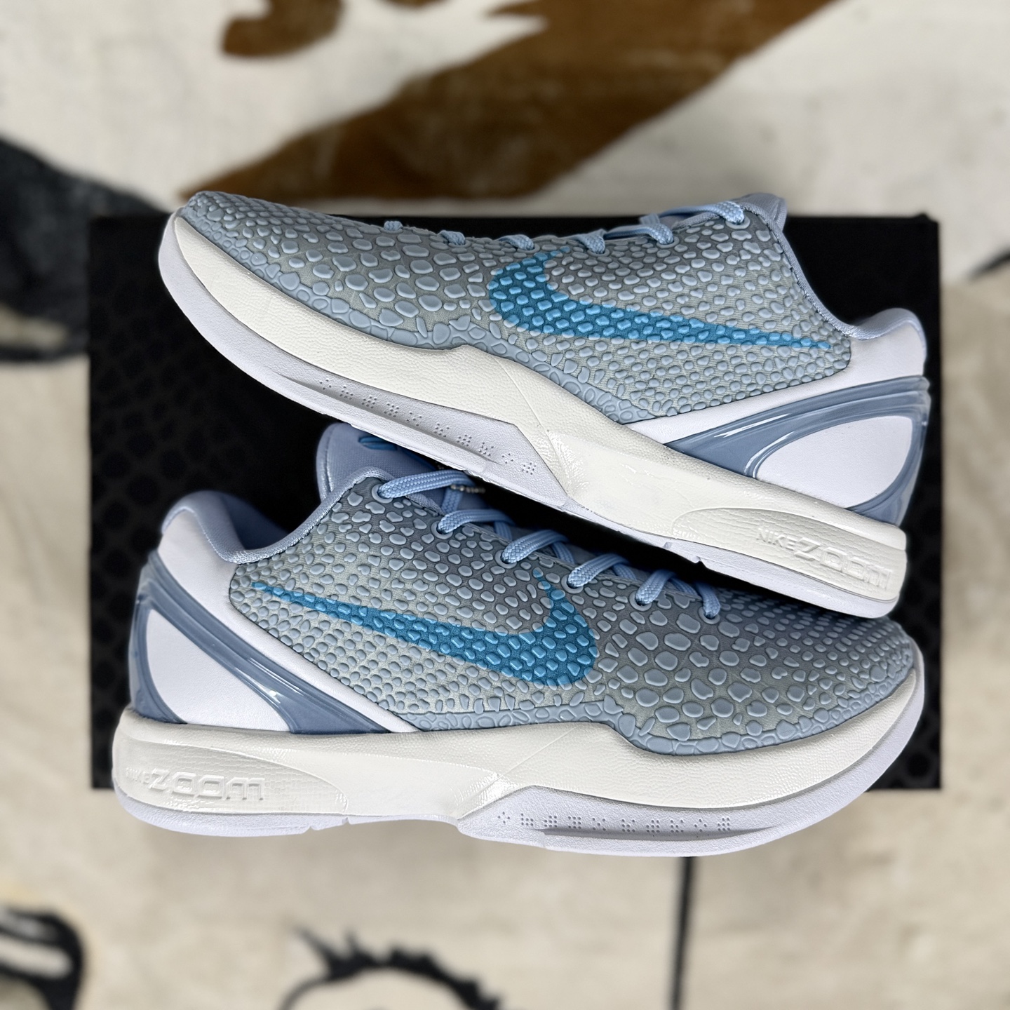 Nike Zoom Kobe VI是耐克公司与篮球巨星科比 布莱恩特于2010年12月7日共同发布的经典鞋款 这款鞋的灵感源自科比在球场上的外号 黑曼巴 设计中巧妙融入了黑曼巴蛇的凶猛与精准元素 它采用了三层鞋面设计 内层为网眼材质 中层运用Flywire技术 外层则是模仿蛇皮纹理的独特聚氨酯 凸点 既耐磨又轻盈透气 在科技配置上 科比6代配备了Nike Zoom气垫单元 提供卓越的缓震与回弹性能 同时中底采用Phylon注塑材料 更好贴合足部 提升穿着的舒适度与稳定性 此外 还创新性地使用了双层记忆海绵鞋垫 可根据脚形自动调节 带来个性化的贴合体验 总的来说 科比6代不仅功能性强 而且是科比个人风格与耐克创新科技的完美结合