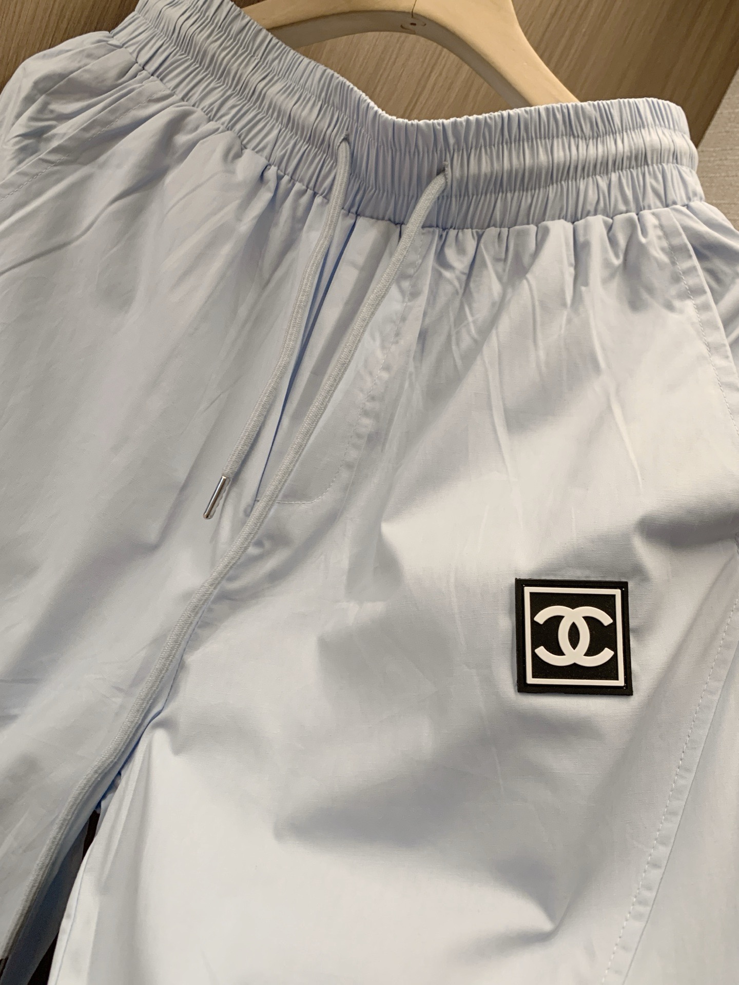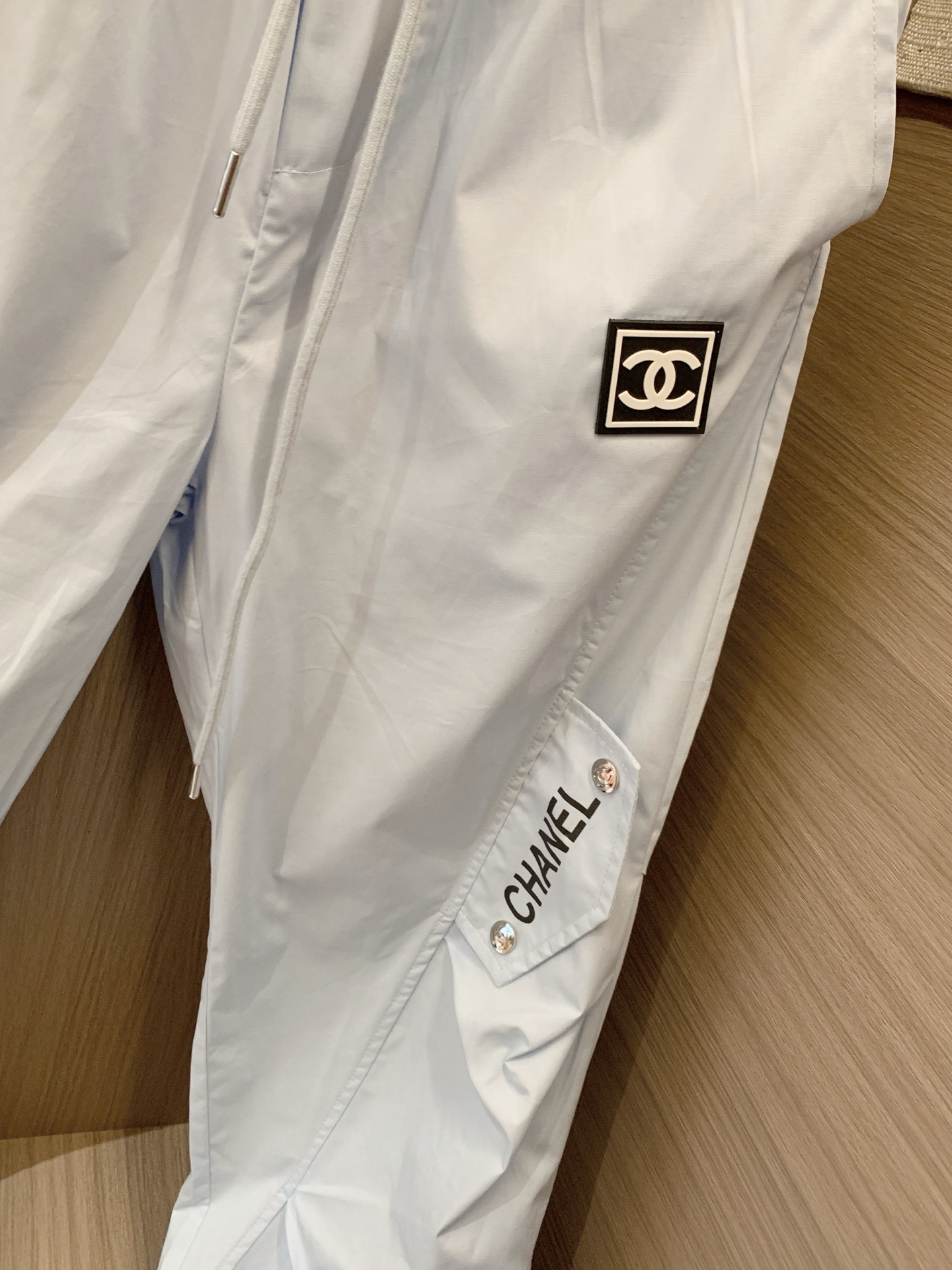 Chanel香奈儿小香定制中古双C皮标字母印花抽绳松紧腰工装休闲长裤