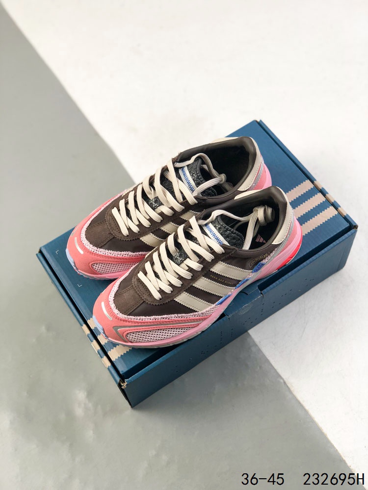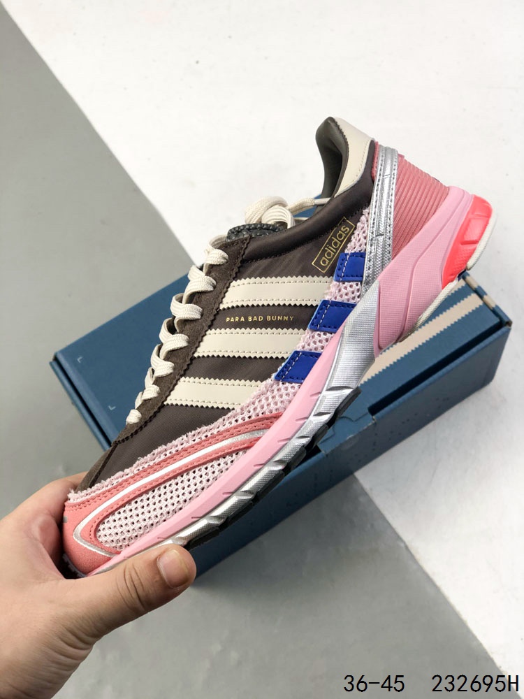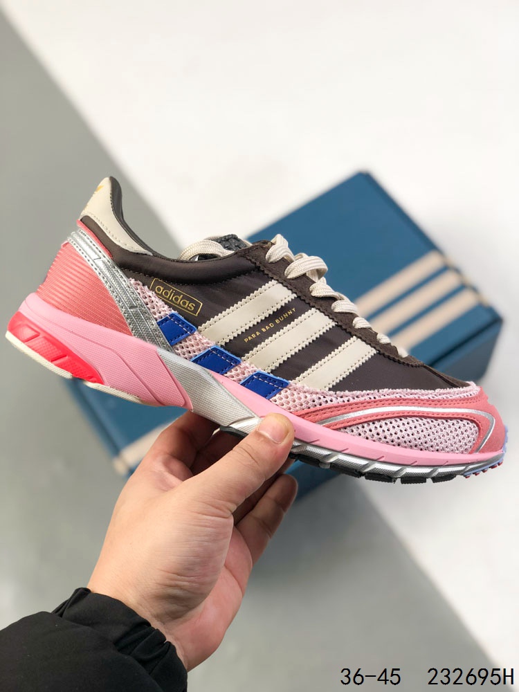 阿迪达斯 Bad Bunny x adidas 以 Adizero SL 72 复古休闲运动跑步鞋 奶油坏痞兔老爹鞋 Bad Bunny x adidas Adizero SL 72最新合作鞋款 巧妙地将经典设计与现代创新相结合 这款跑鞋融合了经典 SL 72 的复古元素和 Adizero 系列的尖端设计 全鞋采用多层结构打造 并通过华夫格网眼布 麂皮 皮革和灯芯绒等质感材质的拼接 营造极具高级格调的层次视觉 印在足弓处的 Para Bad Bunny 字样则凸显鞋款合作身份