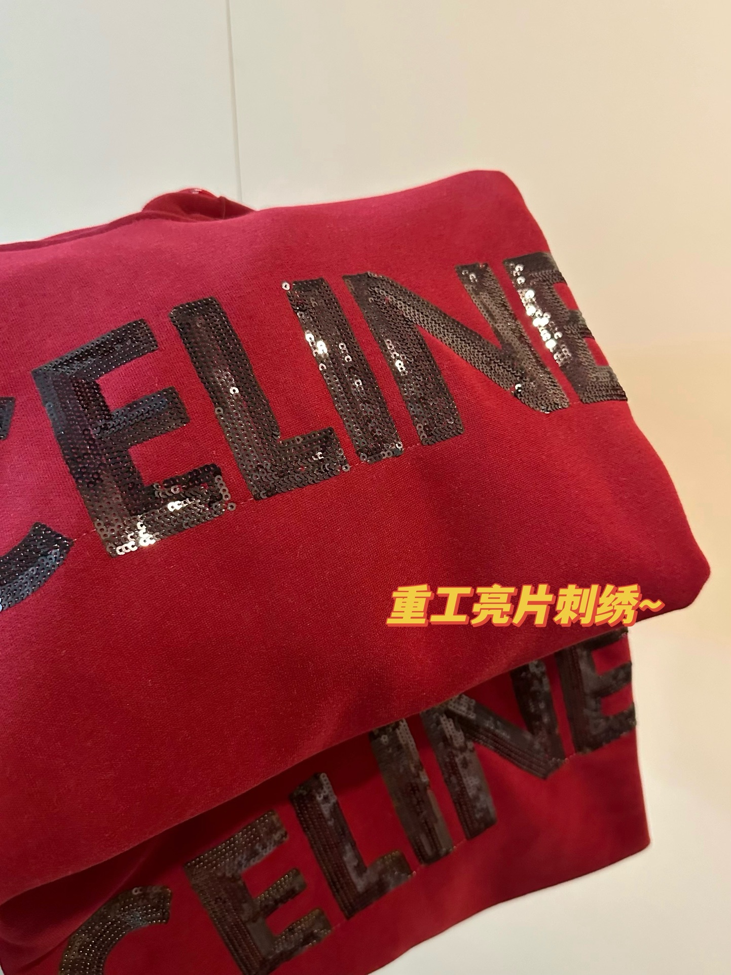 110212532 - Celine赛琳新款亮片刺绣酒红色加绒连帽卫衣 瑟琳帽衫绝对 422924
