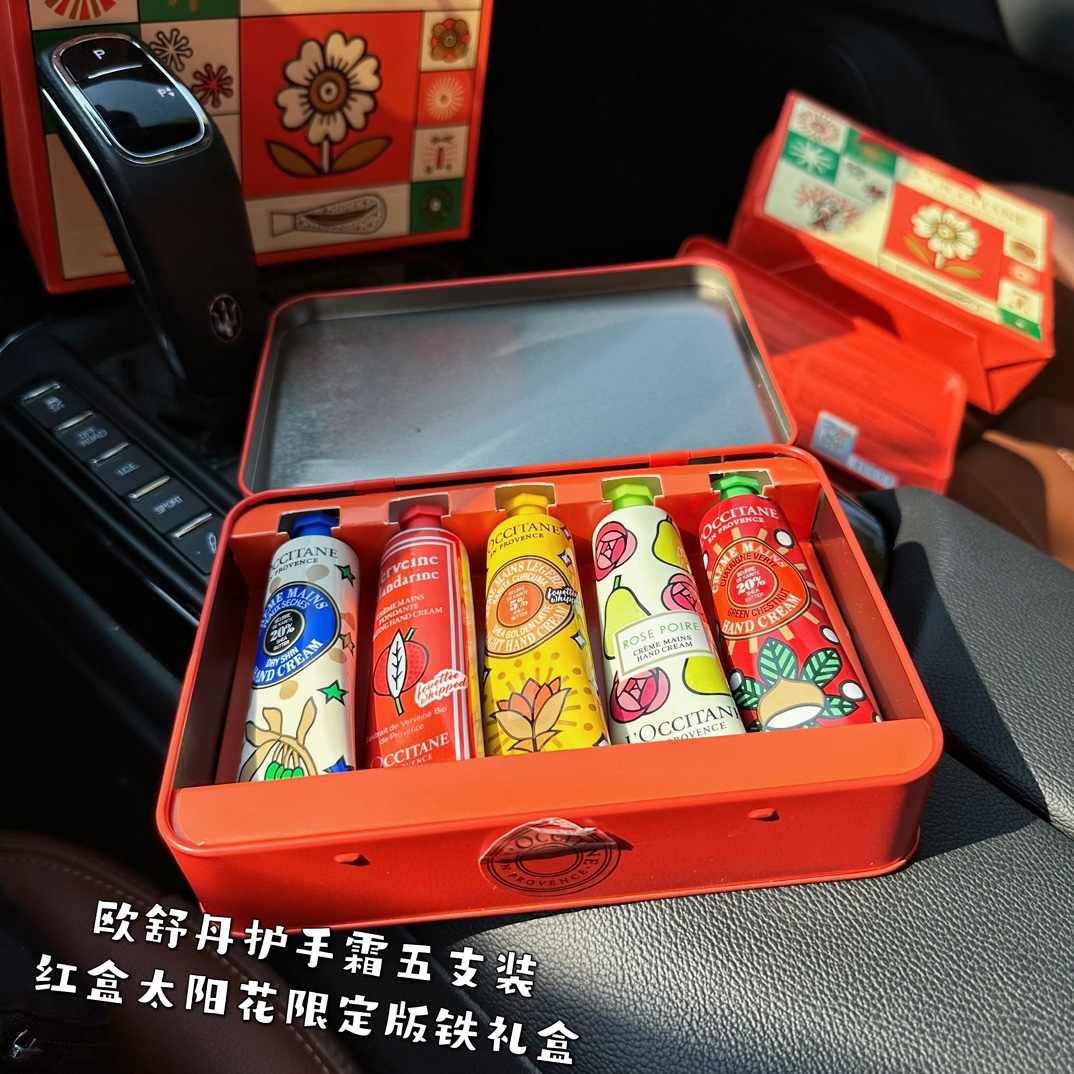 Hold住任何场合 让人一触难忘 顶级的护手霜专家 贴身手护 刻不容缓 L0ccitane欧舒䒟护手霜五支装红盒太阳花限定版铁礼盒 一盒五支 每支都是欧家醉畅销的 支支经典 掌柜全球狗渠D就一批十来盒 抢完无 线上300 同步在售 掌柜家聚划算了 暖栗森林30ml 玫瑰清梨30ml 拿铁慕斯30ml 马鞭草柑橘30ml 限量乳木果30ml 天干物燥 刚需护手霜必备啊 好闻又好用 无限回购 佺球醉好用的护手霜 简直就是护手霜界的 爱马仕