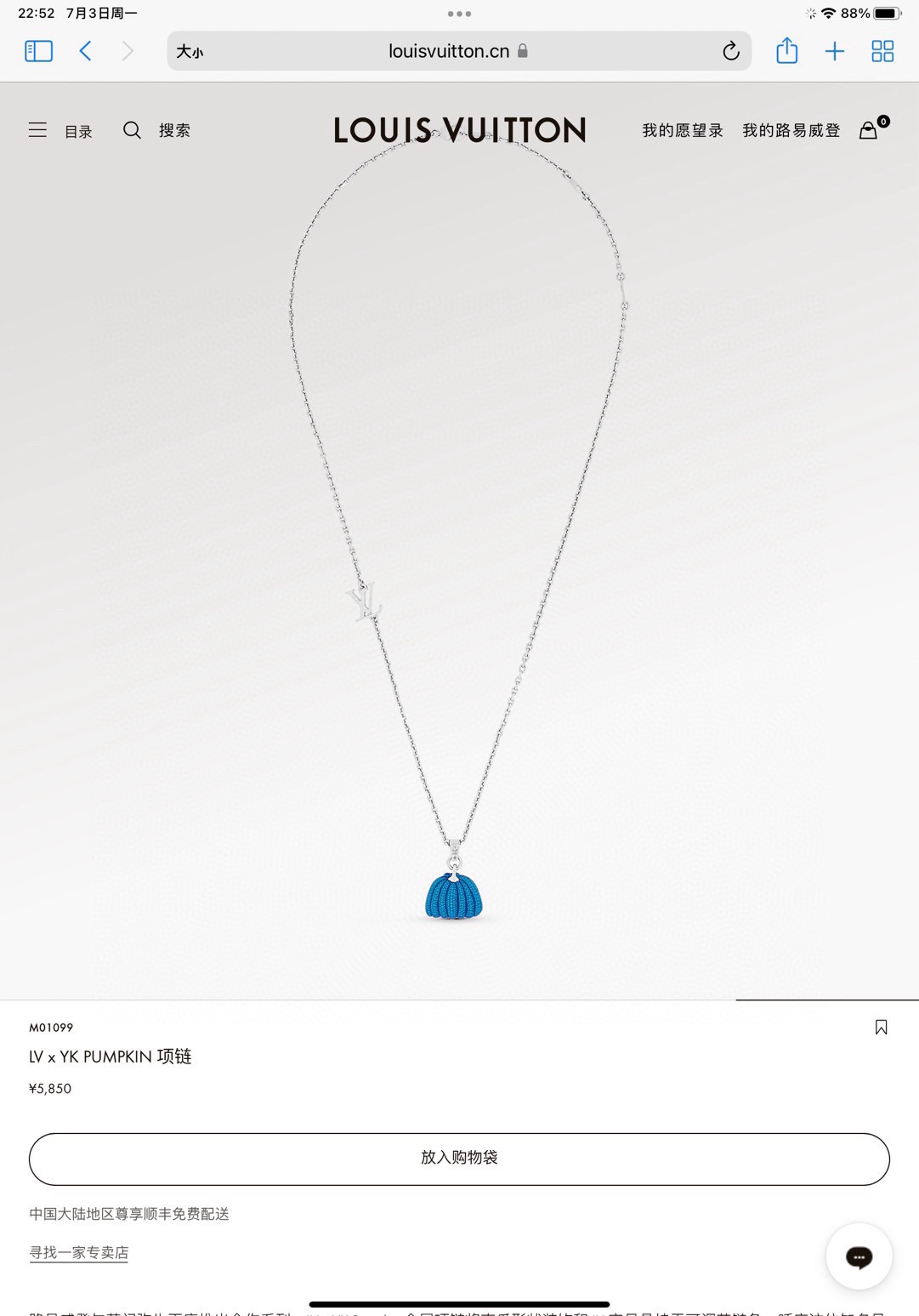 LV路易威登 草间弥生南瓜项链 配全套包装