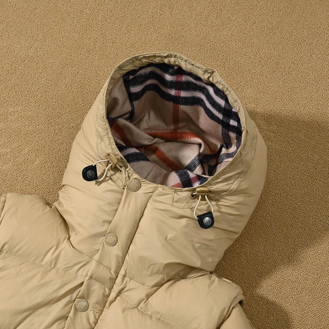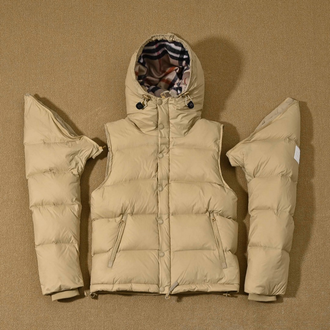 正品级BURBERRY巴宝莉可拆式衣袖连帽羽绒服 独家原版定制 坚持原版开发 与原版一致 装饰vinatage复古格纹内衬的高领与连帽 可拆式衣袖 缔造背心造型 上身效果超级棒 舒适保暖 又可以当马甲 超级实用 整体看起来很高级特别 独家重工款式 国内首屈一指工艺 难度级别非常之大