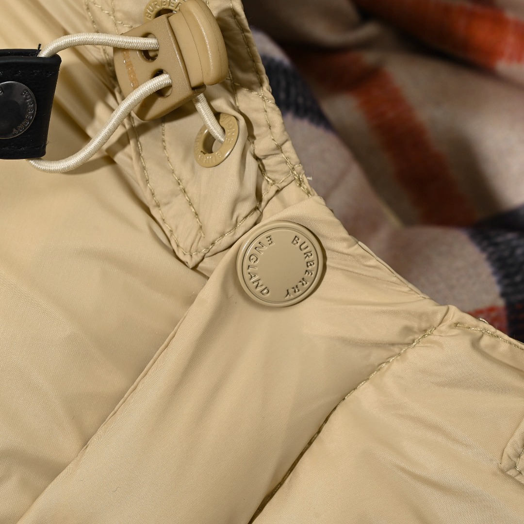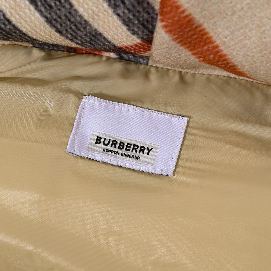 2023年BURBERRY LONDON ENGLAND家冬季新款羽绒服 巴宝莉顶级原单可脱卸袖子羽绒服 周冬雨同款 可拆卸 当马甲 一衣两穿 领口格子边为羊绒制品柔和亲肤丝滑 官网主推售卖款