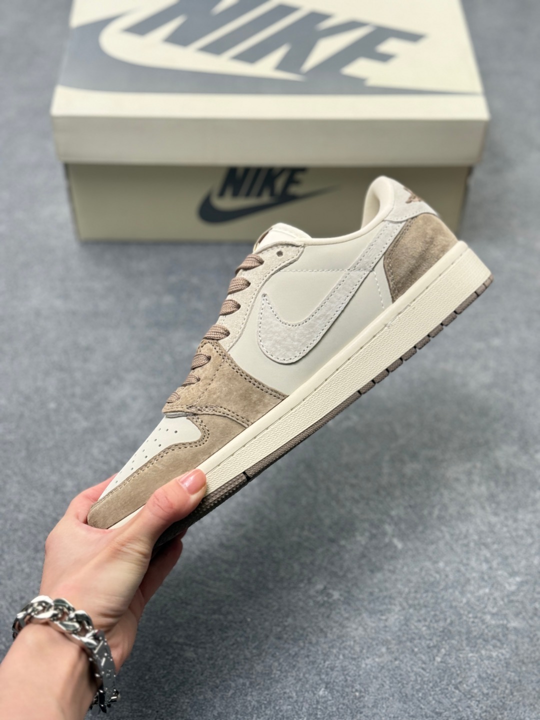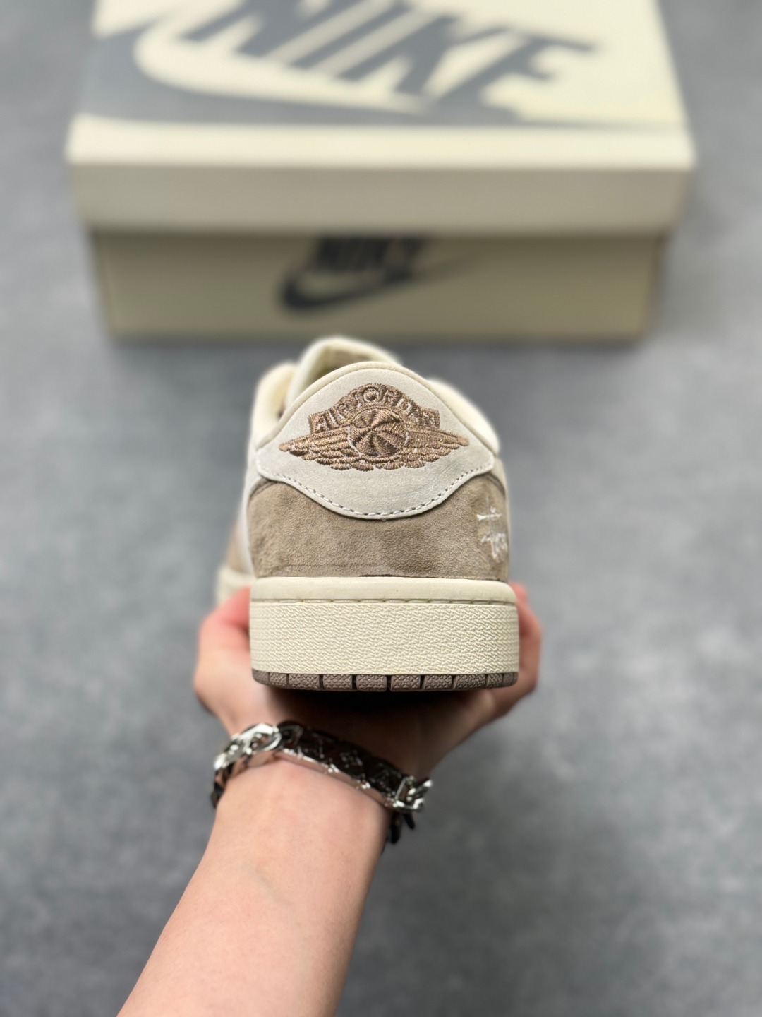 多方联名合作融合了Travis Scott 独特的音乐风格 藤原浩个性的设计风格以及Jordan品牌的经典元素 使其成为一双具有独特身份和价值的鞋子 清新而立体的外观加上联名标识更突出了其独特身份 这种配色方案显示出活力和时尚感 在视觉上引人注目 鞋身的质感和细腻的细节处理使其显得高端而格调十足 这款 倒钩 联名是设计与创意完美结合 融合多方的个性风格是一款备受瞩目的潮流鞋款