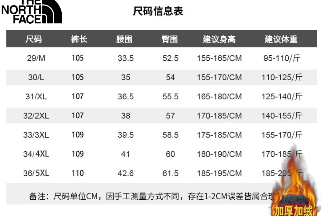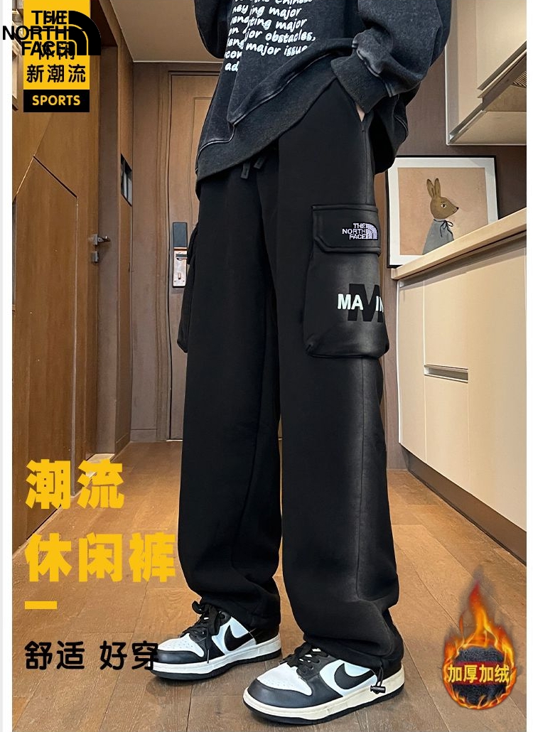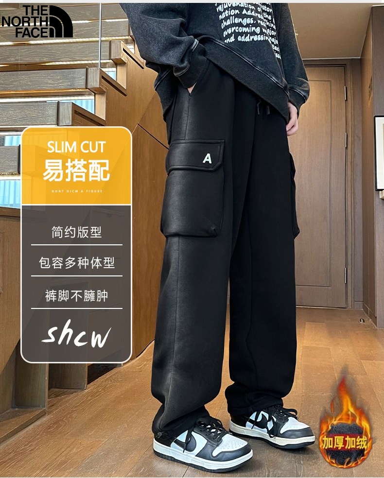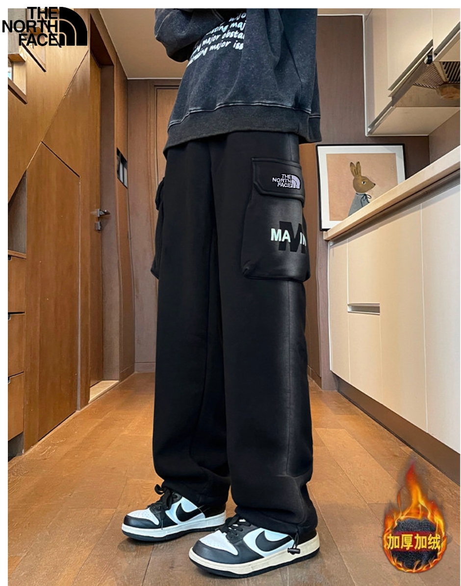 北面The North Face冬季新款 男女同款松紧腰卡尔棉加绒加厚水洗百搭休闲裤 男士卫裤 百搭直筒裤长裤