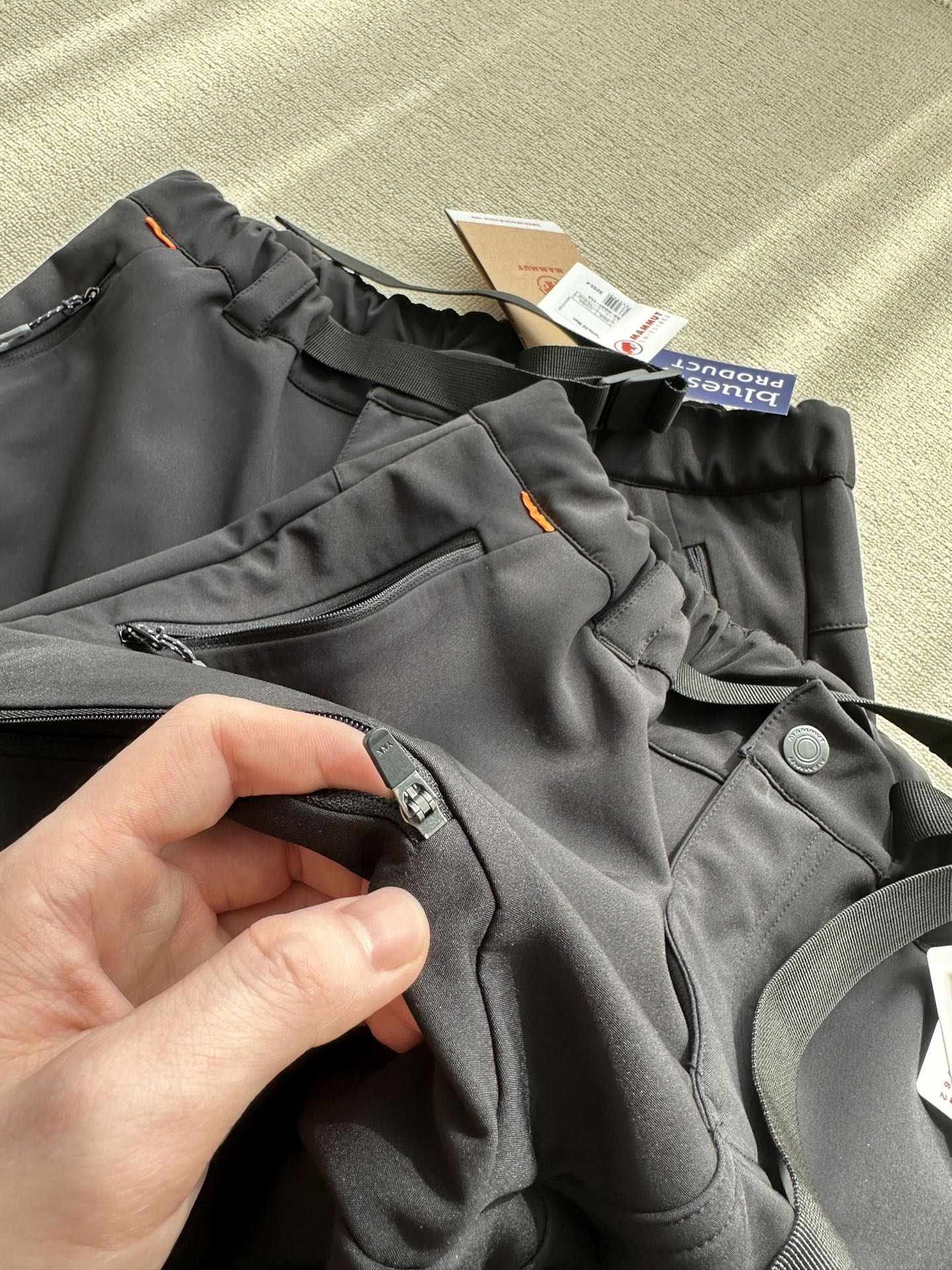 2个带拉链的开缝口袋和2个拉链裤脚口袋 能安全收纳更多物品