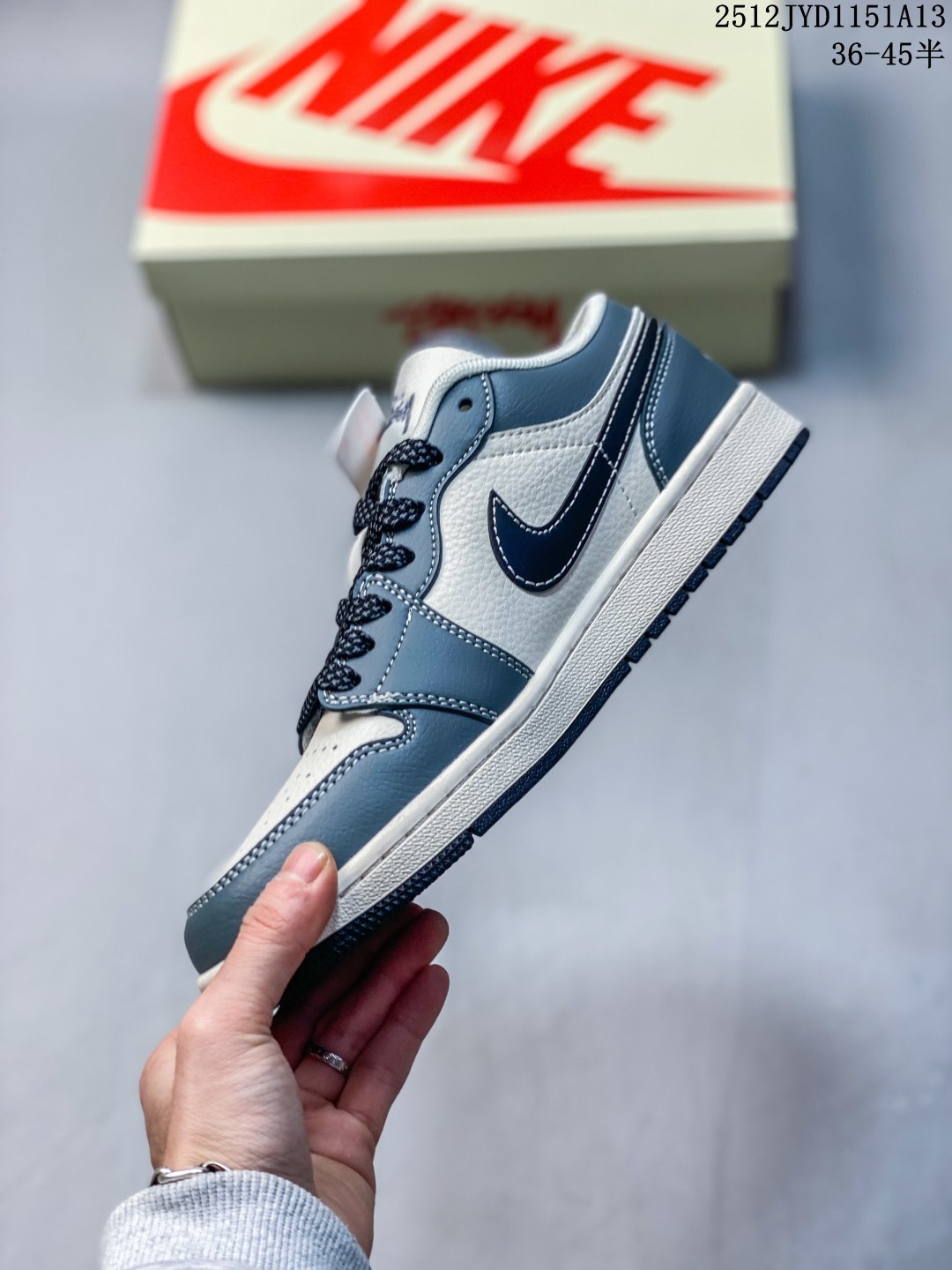 Nike Jordan Air Jordan 1 斯图西联名 灰猪八英文黑底 高端定制 低帮 复古 减震 防滑 耐磨 篮球鞋 定制鞋盒 大厂纯原品质出货 超高清洁度 皮料切割干净无任何毛边 细节完美