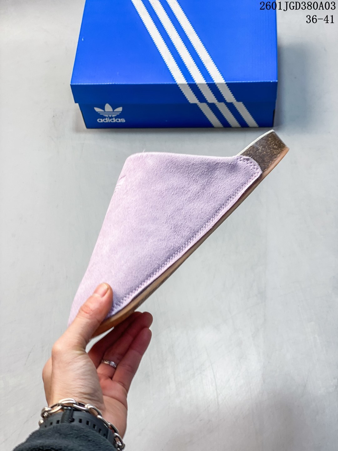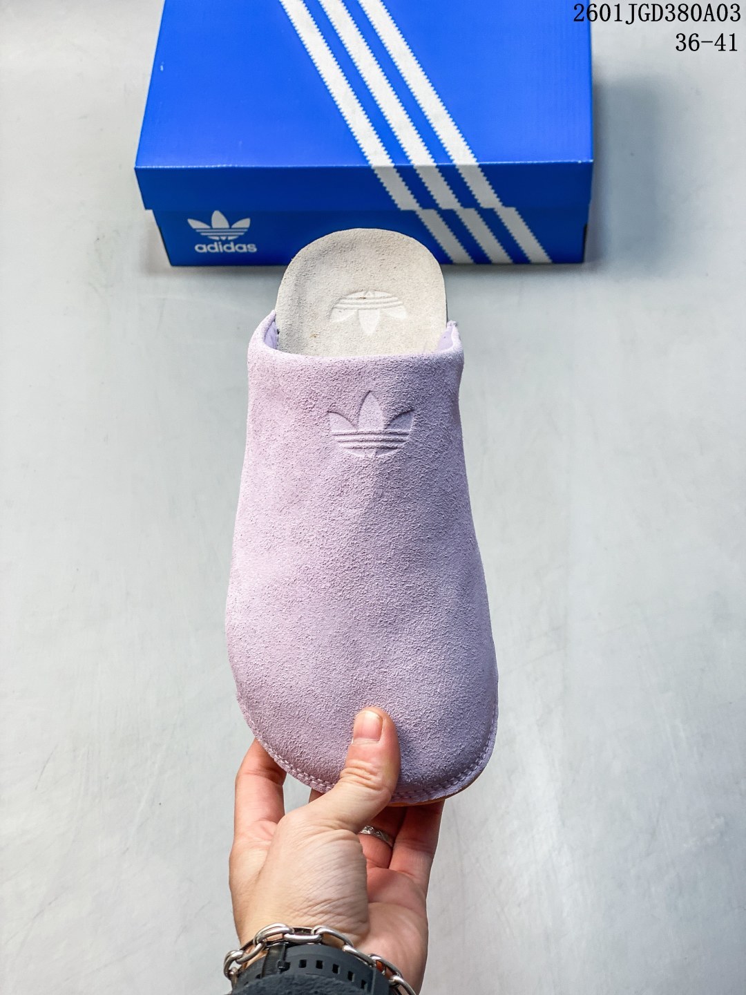阿迪达斯 adidasADIMULE舒适休闲拖鞋 穆勒鞋男女新款阿迪达斯官方三叶草 adidas Originals Adimule 拖鞋 复古舒适 百搭之选 包头拖鞋 它是时尚与舒适的结晶 让我一上脚就爱上 这款 Adimule 拖鞋的棕色很有复古感 能轻松拿捏各种风格 它的设计基于经典木底鞋轮廓 圆润的包头造型搭配简约的鞋面线条 尽显优雅气质 翻毛皮材质的鞋面 手感柔软细腻 摸起来那叫一个舒服 轻松提升整体造型档次 无论是搭配休闲裤还是牛仔裤 都能轻松驾驭 软木鞋床是这款拖鞋的一大亮点 它能根据脚步形态塑造出贴合脚型的支撑 就像踩在云朵上一样 给予双脚全方位的承托 长时间穿着也不会累 内衬采用舒适材质 亲肤透气 让双脚在鞋内自由呼吸 即使在炎热的夏日 也能保持干爽 橡胶外底自带防滑条纹 抓地力强 不管是走在光滑的瓷砖还是湿滑的地面 都能稳稳当当