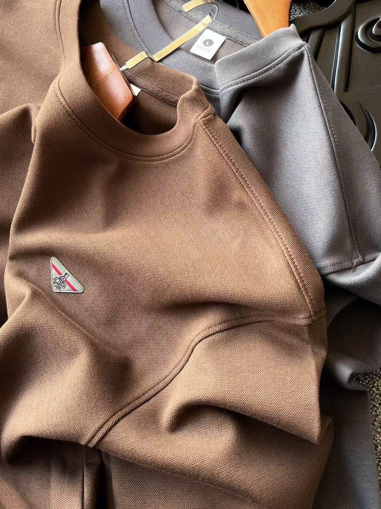 普拉达家今年最新研发60支340g空气棉面料 表层带蜂窝纺织肌理 内里牛奶丝处理 触感亲肤 上身舒服 垂感极好 整体视觉效果彰显专柜高奢质感
