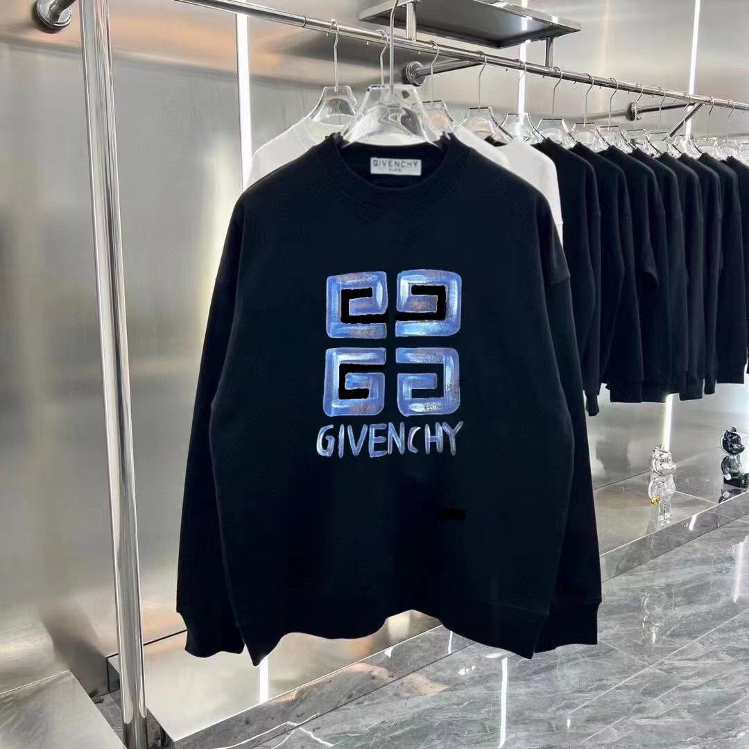 GIVENCHY纪梵希2024ss新款蓝色涂鸦logo印花圆领卫衣 男女同款