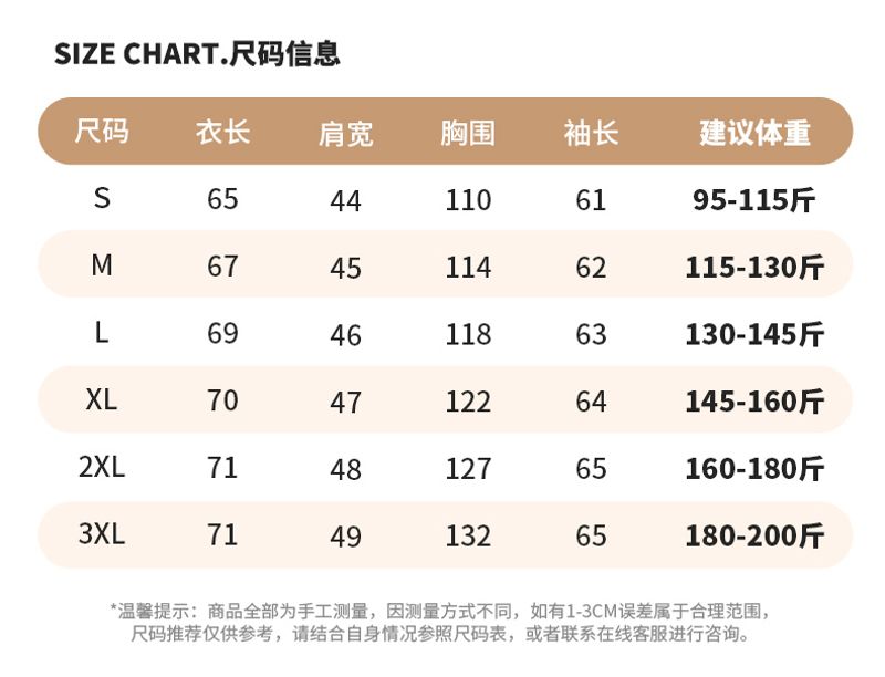 尺码 M 3XL