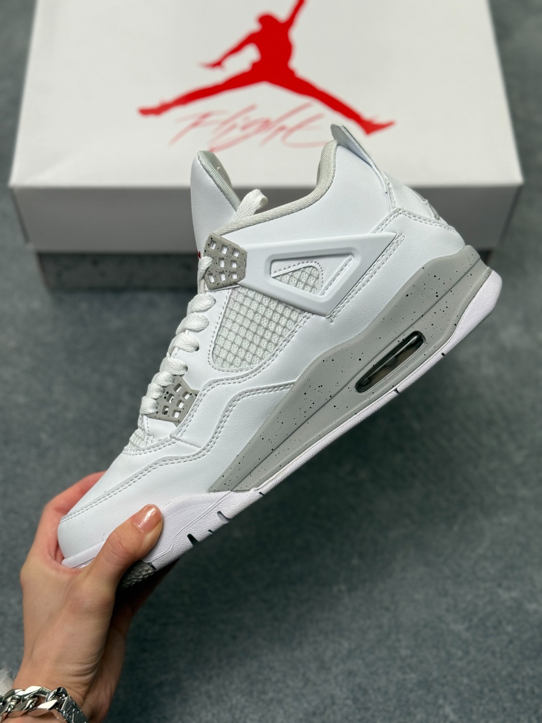 Air Jordan AJ4 Retro 奥利奥 全套原纸板楦头开发 原厂特供皮料加持 确保原汁原味 完美呈现四代版型 一比一鞋头弧度高度鞋身弧度 数据细节工艺流程均保持原鞋一致 原厂TPU网格鞋带扣 正确内里网布 菱角分明不变形无多余毛边 柔软性质感一致于原鞋 市场唯一原厂鞋扣模具 背面可见隐藏注塑口 原厂织唛标 原厂飞人电绣工艺 尾指中部跳三针 独家绑鞋带手法 印刷中底布 四线拉帮 米色美纹纸贴合固定 进口港宝加持 后跟自然饱满 全鞋荧光划线卡点 追求极致完美 每一双都是工艺品 多重QC质检 超越公司货的品控标准 实实在在的免检产品
