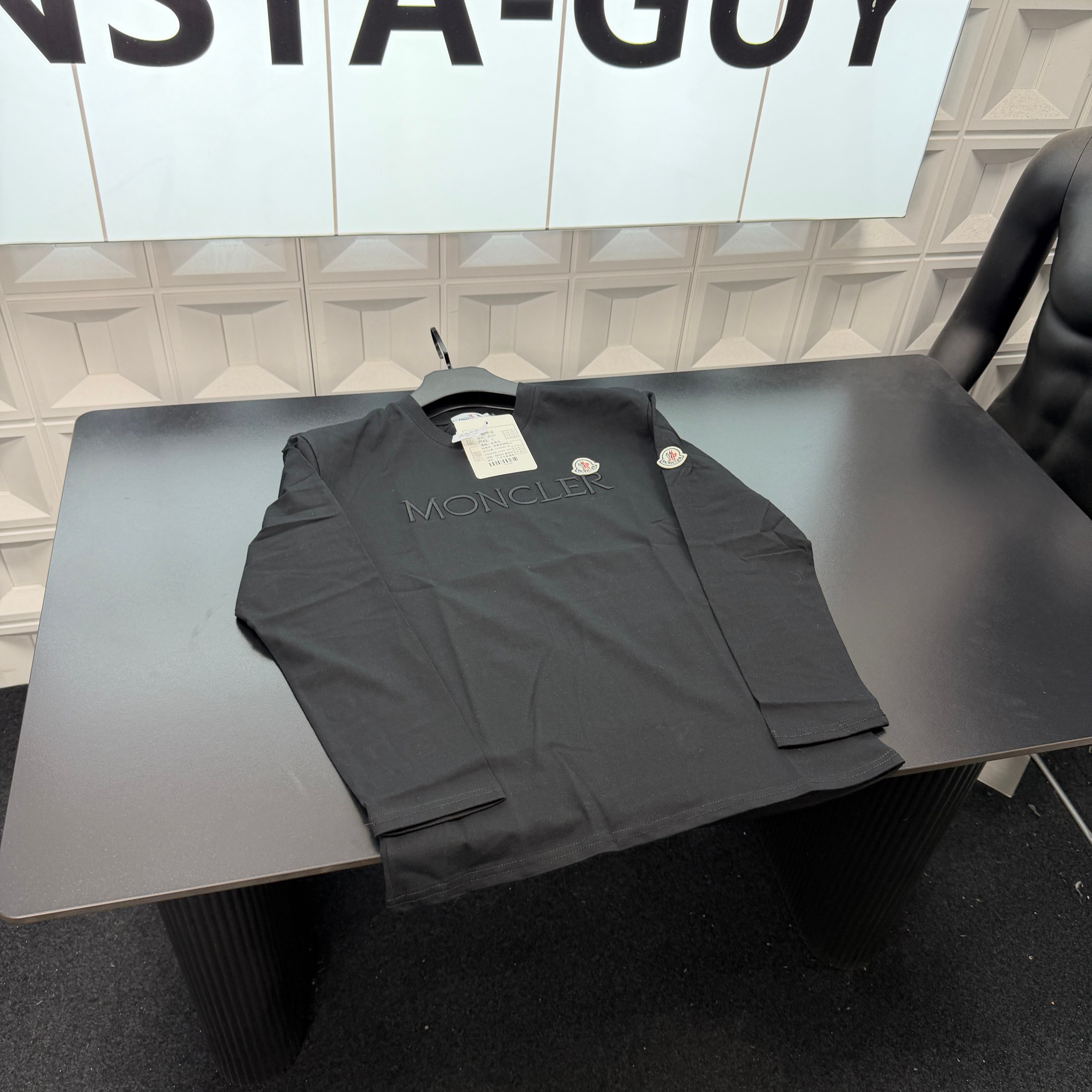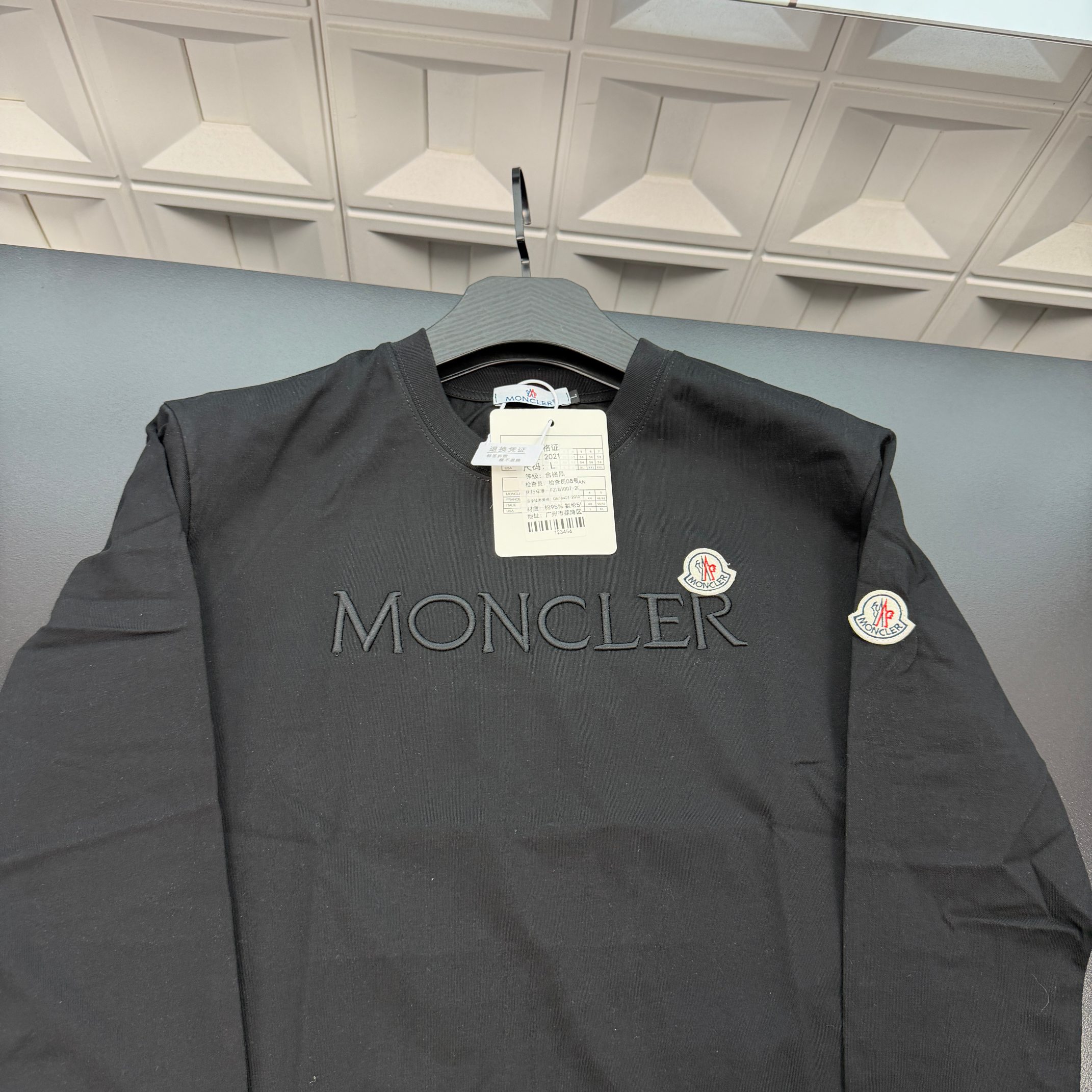 春夏新款上新爆炸输出蒙口T恤长袖打底衫 胸前植绒刺绣字母 袖子刺绣徽章Logo 三标齐全官网一致 放大看细节原相机实物拍摄 颜色 黑色 尺码 L 4xl L 80 105斤 XL 105 120斤 2XL 120 140斤 3XL 140 160斤 4XL 160 180斤