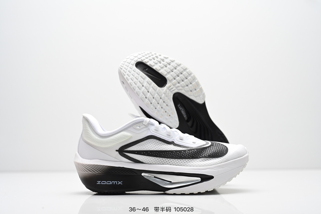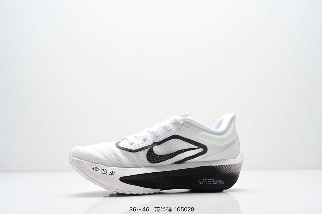 NIKE耐克Zoom Fly 6 马拉松碳板米黑跑步鞋男女同款运动鞋FN8455 001春新款ZOOM FLY 6 PRM缓震轻便跑步鞋 这款鞋在继承了 Nike Zoom Fly 5 的基础上 承诺为跑者带来更上一层楼的体验 它还继承了 Nike Vaporfly 3 和全新 Nike Alphafly 3 的设计风格 展现出更为简约和轻盈的外形 尤其是鞋跟部分 进行了重大改造 不仅提升支撑性 也增加了美观度 在 ZoomX 泡棉成功的基础上 Zoom Fly 6 引入更进一步的缓冲系统 为软硬适中和快速响应之间提供更好的平衡 满足长距离跑和短跑的需求 随着鞋跟和整体结构的可能改进 Zoom Fly 6 为跑者提供更好的稳定性和舒适度 这对于需要适应各种地形和跑步条件的跑者来说尤为重要 对于鞋面的改良 使用新的材料或构造技术 以实现更好的贴合和透气性 这将进一步提升鞋子的舒适度和性能