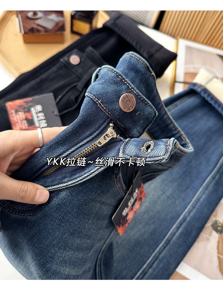 140169381 - 批宝藏梨形裤 冬季加厚绒哈伦牛仔裤女宽松藏肉遮胯九分加绒萝卜 387713