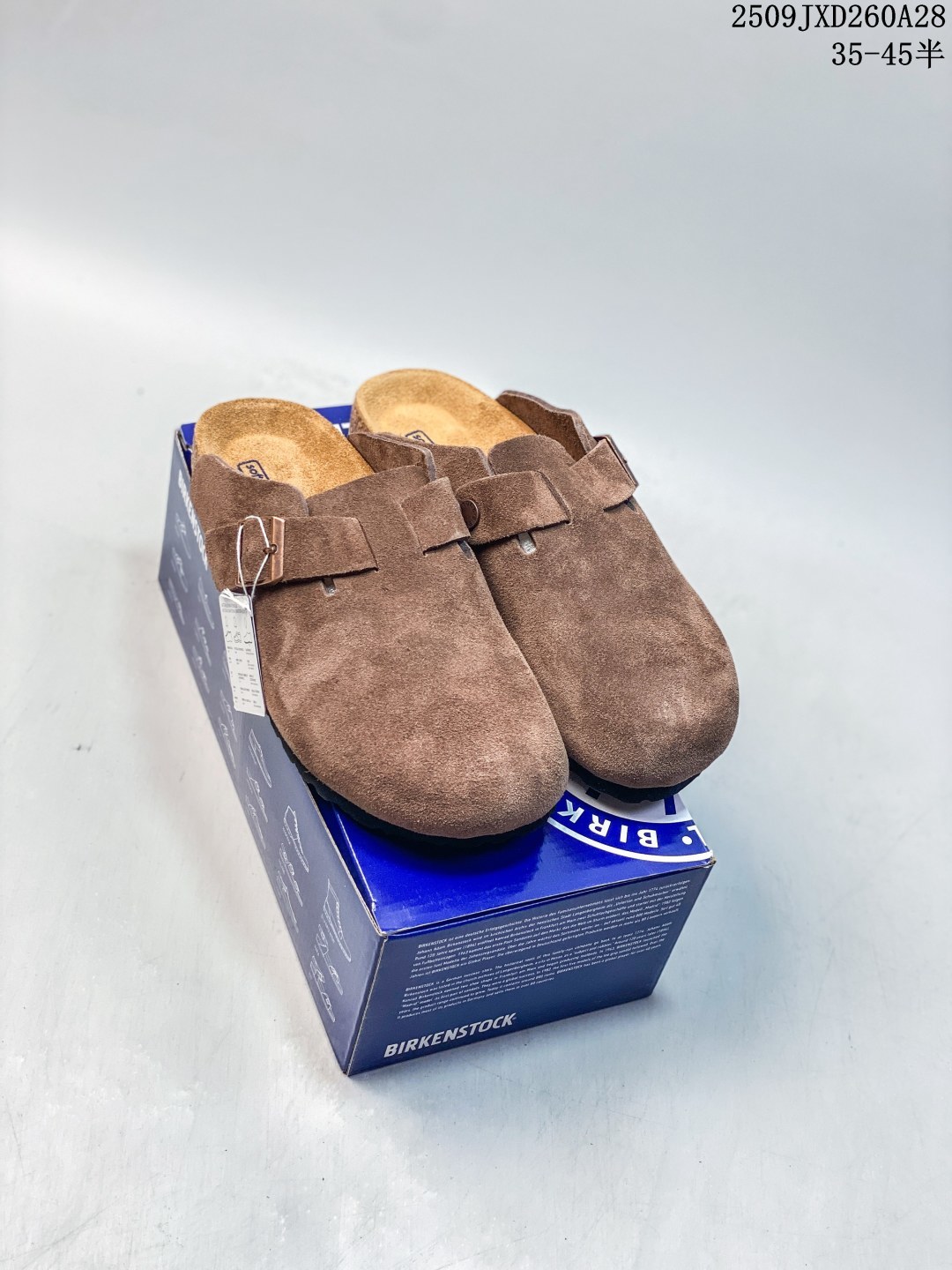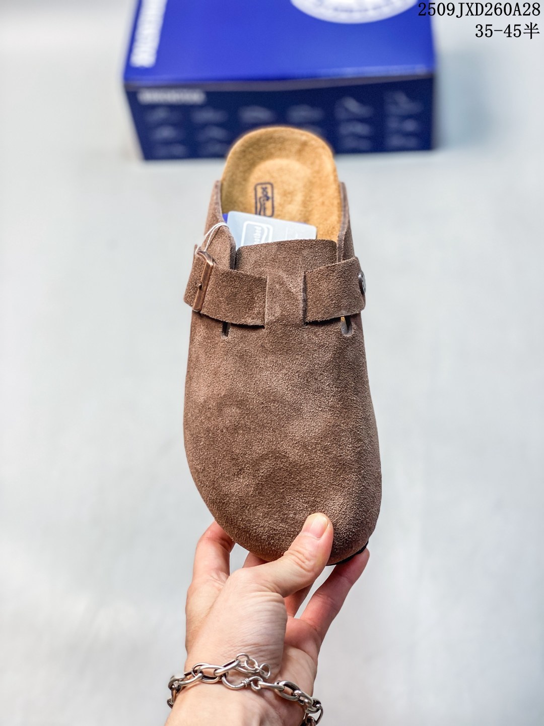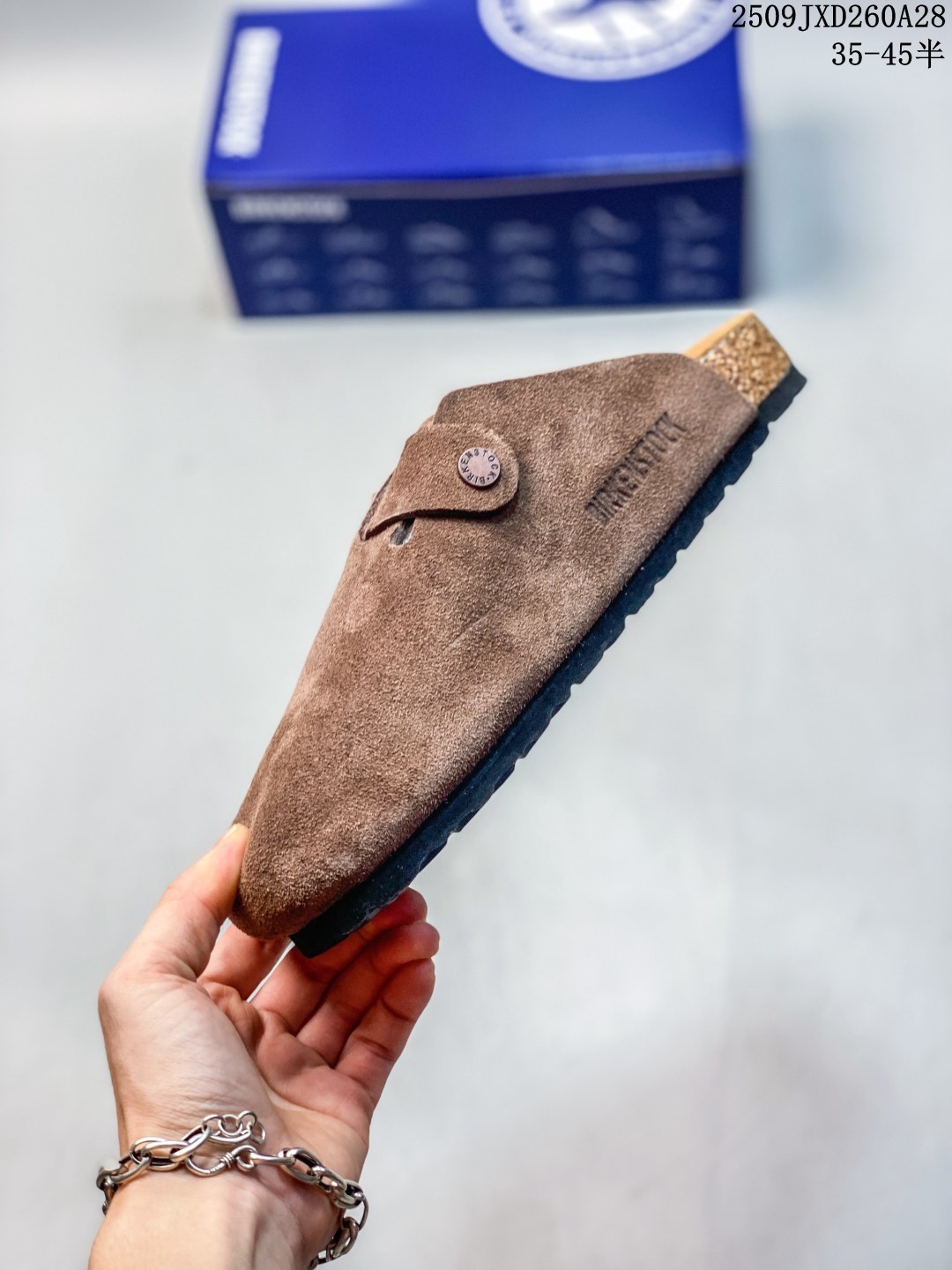 德国百年知名鞋履品牌 博肯Birkenstock 秋冬新款 勃肯半拖凉鞋系列加棉 加绒包头拖鞋 广东原产 采用质地柔软牛皮革 中底搭载缓震软木橡胶 外置EVA轻量片装外底